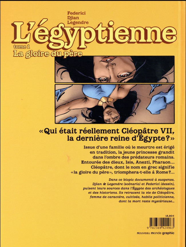 Dans ce biopic documenté à suspense, Djian et Legendre (scénario) et Federici (dessin), puisent leurs sources dans l’Égypte des archéologues et des historiens. Ils retracent la vie de Cléopâtre, femme de caractère, cultivée, habile politicienne, dont la mort reste mystérieuse...