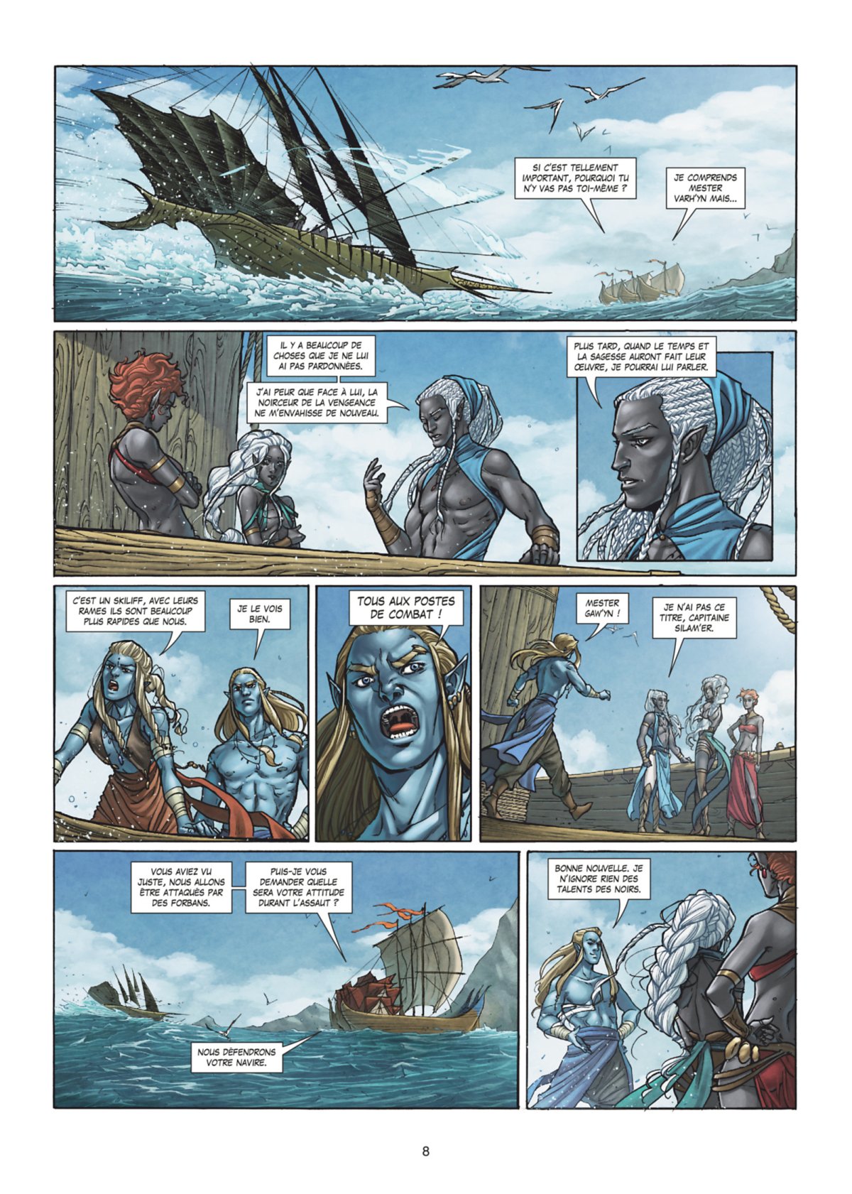En route vers Locamée le navire de Gaw’yn est attaqué. Ses talents de tueur lui permettent de vaincre les assaillants mais rien n’est résolu à son arrivée car la cité est gouvernée par un prince marchand en collusion avec les forbans. Là, Gaw’yn va comprendre que c’est à une traque aux elfes que se livre le prince, persuadé que les humains doivent régner sans partage sur les terres d’Arran.