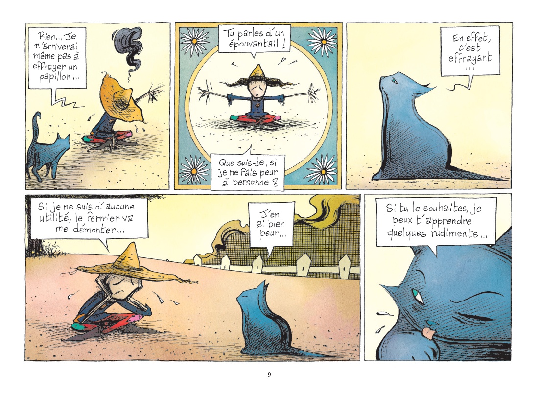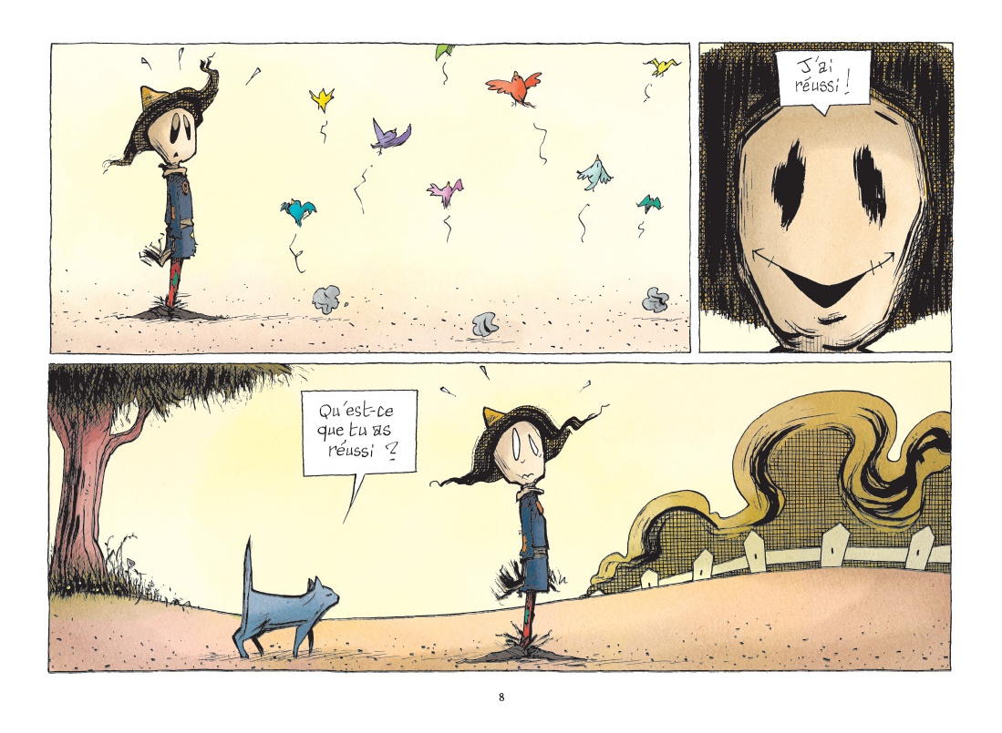 « Il était une fois, dans une campagne lointaine, un fermier qui, pour éviter que des oiseaux ne viennent picorer toutes ses semailles, installa sans son champ un épouvantail... »