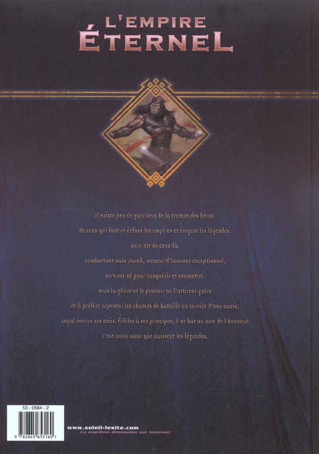 Honneur d’un guerrier (L’) est le volume 1 de la série Empire éternel (L’) par Dominique Latil et Lucio Parrillo, paru en 2003. Selon nos informations, il n'en existe qu'une seule édition, publiée par Soleil.