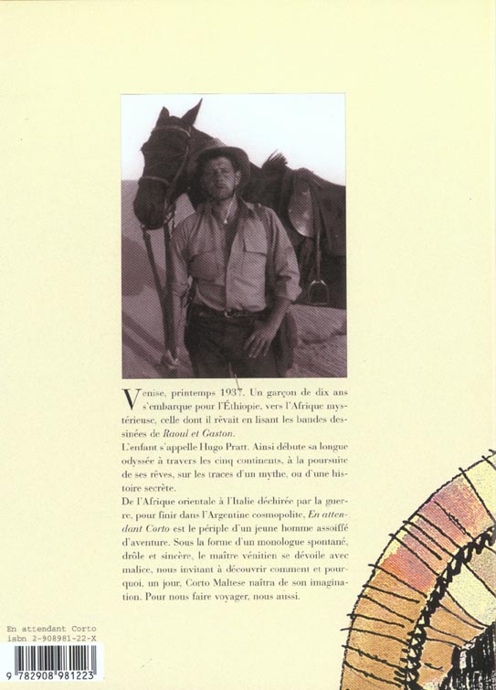 Venise, printemps 1937. Un garçon de 10 ans s’embarque pour l’Ethiopie, vers l’Afrique mystérieuse... Ainsi débute la longue odyssée d’Hugo Pratt à travers les 5 continents, à la poursuite de ses rêves. En un long monologue, le créateur de Corto se dévoile avec malice.