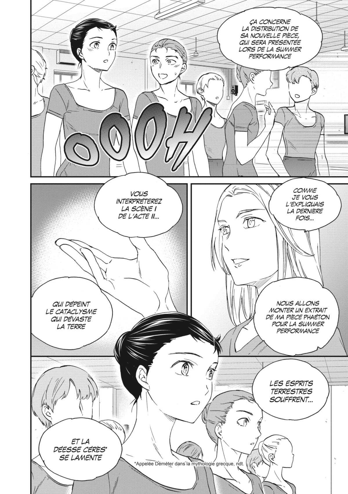 Le choix est fait : lors de la Summer Performance, les élèves de l’école du Royal Ballet danseront un extrait de la pièce Phaéton, chorégraphié par Abigail Nicols. C’est Kanade qui est désignée pour interpréter un rôle phare de l’oeuvre, la déesse Cérès. Si Abigail Nicols lui exprime sa confiance, la rivalité entre Kanade et Evelyn, qui n’a pas dit son dernier mot, pourrait bien durer jusqu’au dernier moment. L’enjeu est de taille pour Kanade, la bourse qu’elle reçoit pour ses études étant conditionnée à son parcours sur scène. La jeune fille résistera-t-elle à la pression grandissante ?