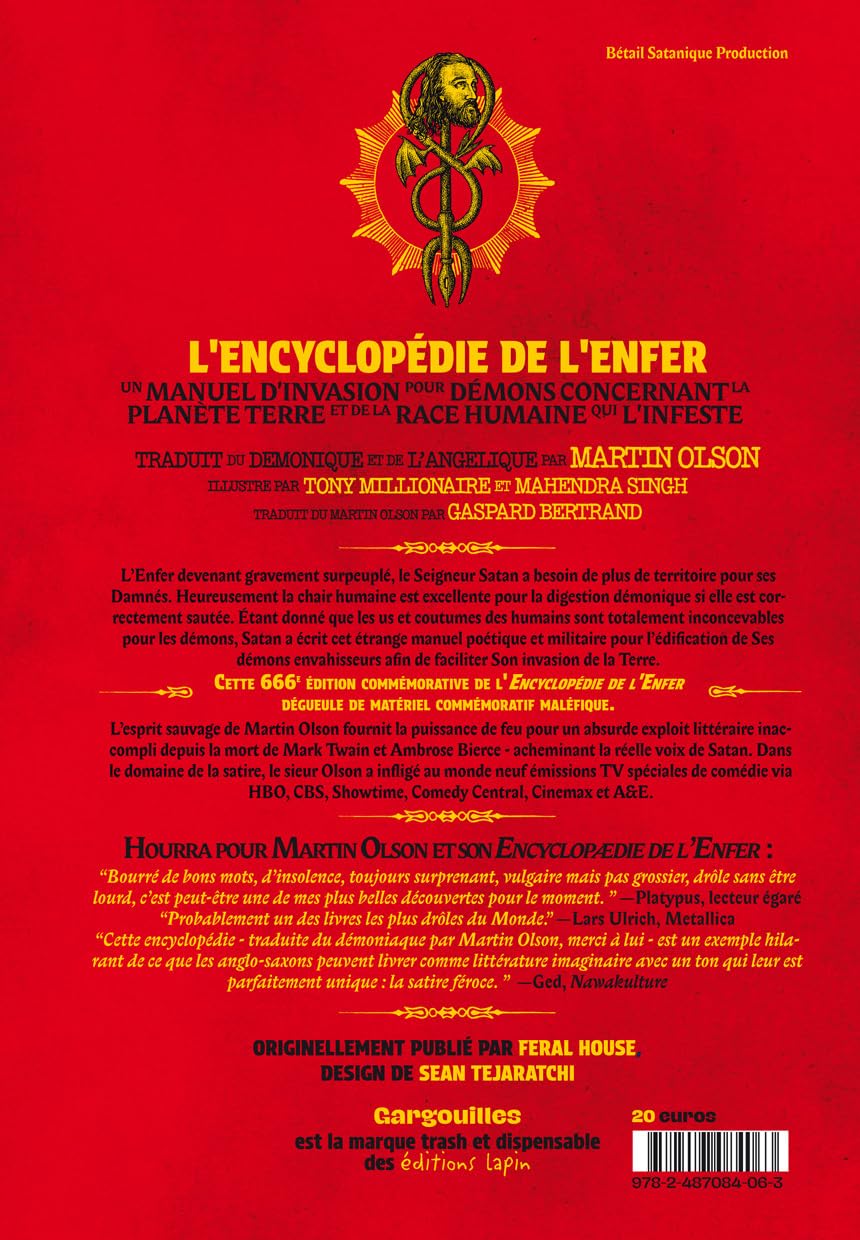 L’enfer devenant gravement surpeuplé, le Seigneur Satan a besoin de plus de territoire pour ses Damnés. Heureusement la chair humaine est excellente pour la digestion démonique si elle est correctement sautée. Etant donné que les us et coutumes des humains sont totalement inconcevables pour les humains, Satan a écrit cet étrange manuel poétique et militaire pour l’édification de Ses démons envahisseurs afin de faciliter Son invasion de la Terre