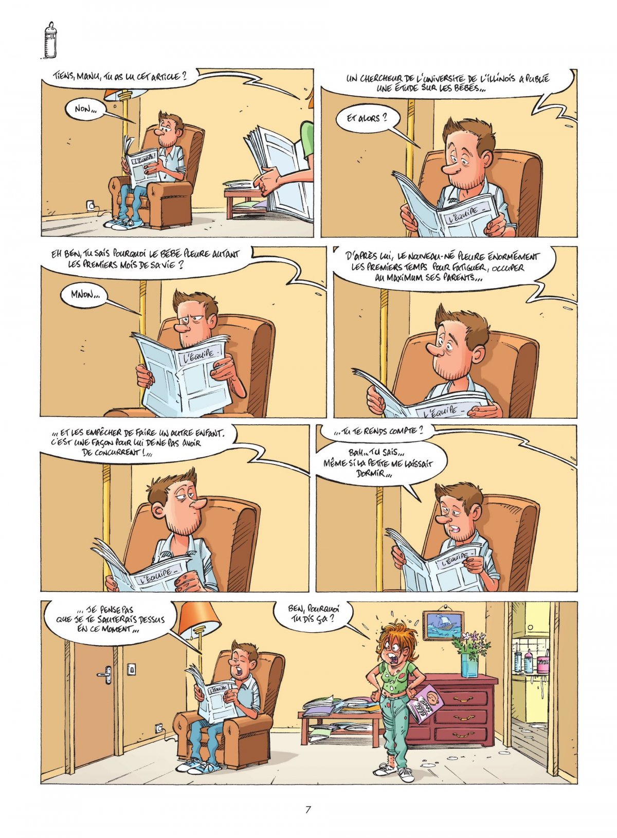 La plus grande aventure de la vie ? Élever un enfant ! L’arrivée d’un bébé dans un couple bouleverse tout. Absolument tout ! Les nuits ne sont plus les mêmes. Elles sont beaucoup plus courtes. Et les jours sont de plus en plus longs. Mais finalement, ça n’est pas grand-chose devant la satisfaction de voir son bébé grandir, faire ses premiers pas et dire « Papa » pour la première fois. À moins qu’il ne confonde encore les « pa » et les « ca ». Entre tracas du quotidien et questions existentielles, Manu et Sophie apprennent le seul job pour lequel il n’existe aucune formation : celui de parents !