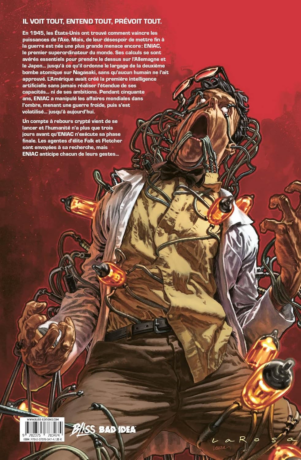 Il y a soixante-dix-sept ans, les États-Unis ont trouvé le moyen de vaincre les puissances de l’Axe. Mais, dans leur désespoir de mettre fin à la guerre, ont créé une menace beaucoup plus puissante :ENIAC, le premier superordinateur du monde. Les calculs d’ENIAC se sont avérés essentiels pour renverser la vapeur contre l’Allemagne et le Japon - jusqu’à ce qu’il ordonne le largage de la deuxième bombe atomique sur Nagasaki sans aucun ordre ni approbation humaine. L’Amérique avait créé par inadvertance la première intelligence artificielle sans jamais se rendre compte de l’étendue de ses capacités... ou de ses ambitions. Pendant les plus de 50 années qui ont suivi, ENIAC a manipulé les affaires mondiales dans l’ombre, menant une guerre froide... jusqu’à ce qu’il disparaisse. Maintenant, des années plus tard, un compte à rebours crypté vient d’être détecté et l’humanité n’a plus que trois jours avant qu’ ENIAC n’exécute sa phase finale.