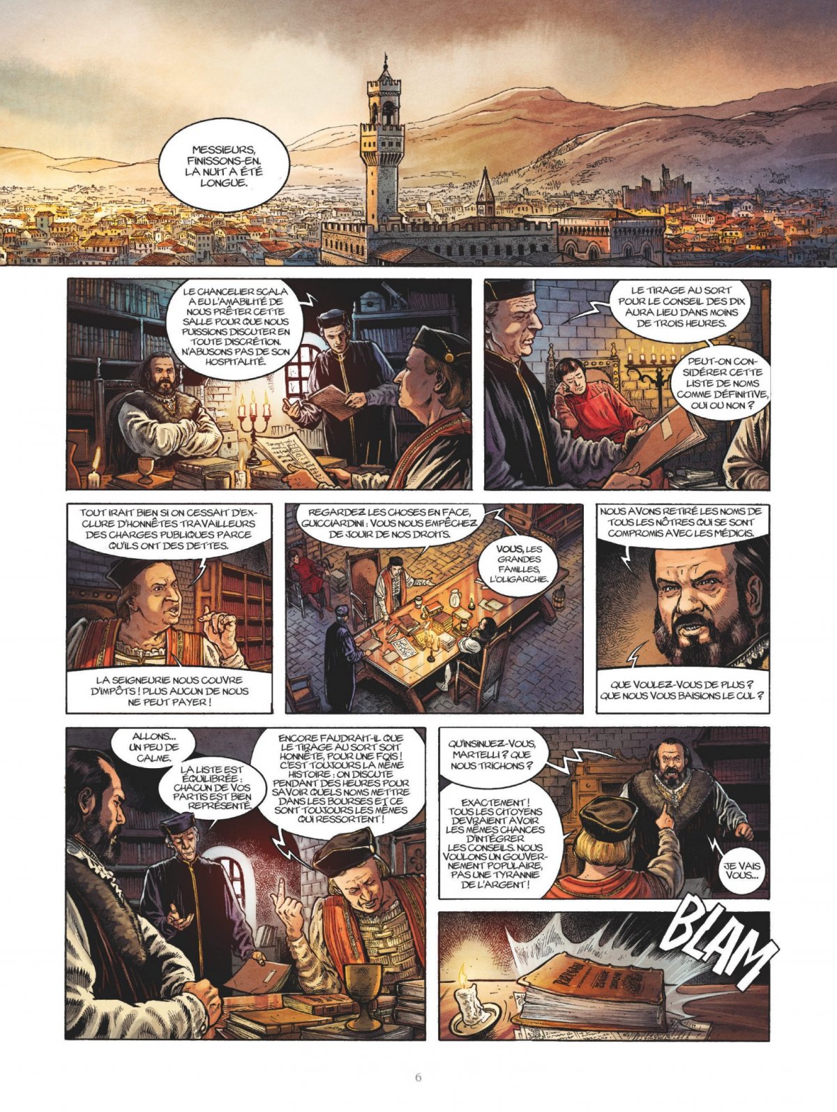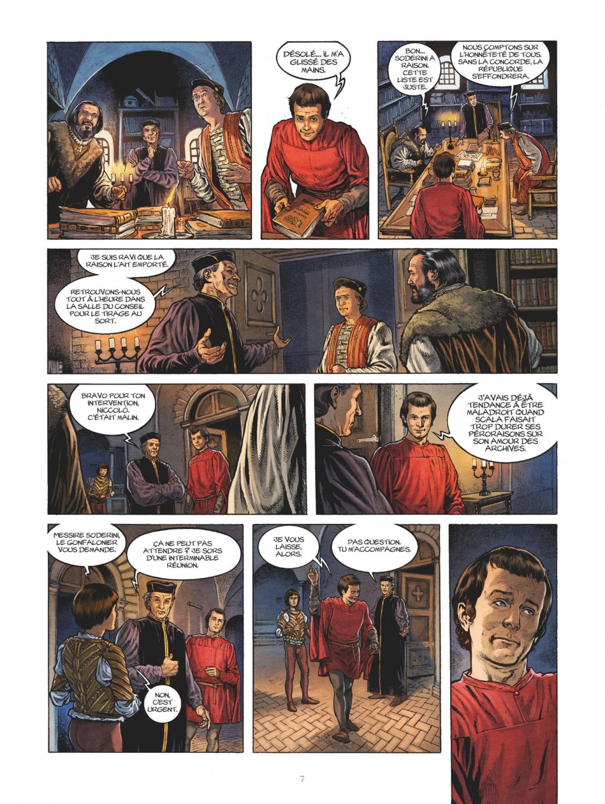1499. Le conflit avec la cité rebelle de Pise réveille la légende du trésor de Laurent de Médicis, dit le Magnifique. Désormais au service de la République florentine aux côtés du retors Soderini, Nicolas Machiavel se voit confier la mission de retrouver "le coeur du Magnifique", une relique aussi mystérieuse que symbolique. Bien décidés à mettre la main sur l’or des Médicis, des espions venus de Pise rendent cependant cette quête hautement périlleuse. Et si la seule personne capable d’aider Machiavel n’était autre que le peintre Botticelli, ami des Médicis et confident de l’ombre ?