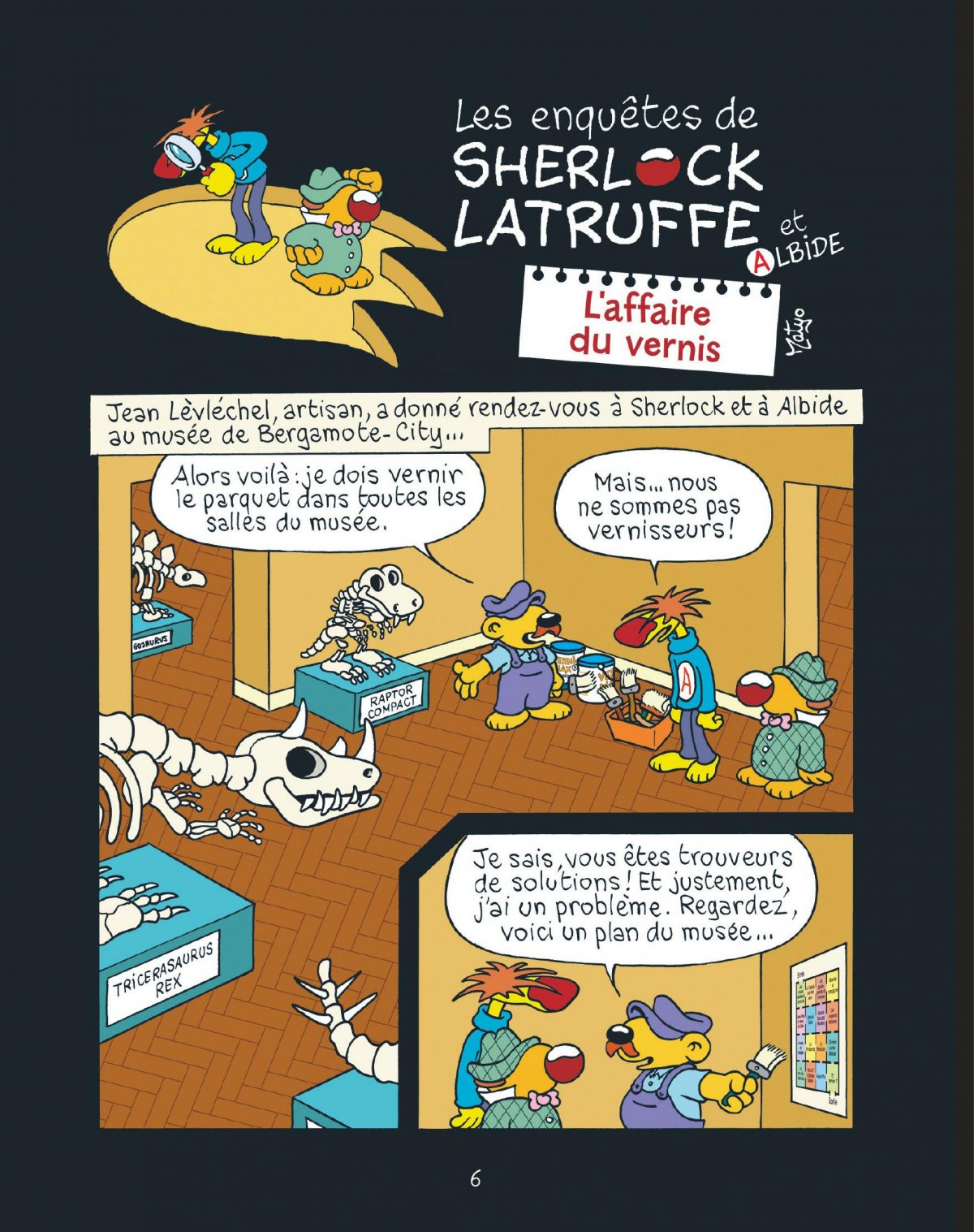 Sherlock Latruffe est détective. Flanqué de son grand dadais d’assistant Albide, il mène des enquêtes, résout des énigmes, déchiffre des codes et crie « GIGAWATT » quant tout s’éclaire. Ceci dit, Sherlock apprécierait un peu d’aide... La tienne, notamment ! Alors observe bien les cases, écoute les alibis des suspects, note tous les détails, et tu parviendras à crier « GIGAWATT ! » avant Sherlock !