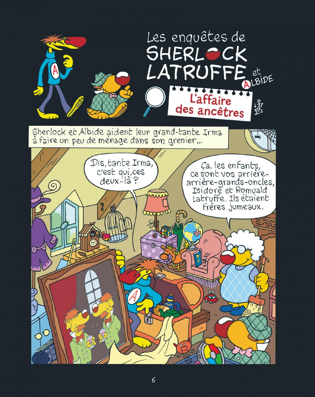 Le détective pour les plus jeunes revient pour de nouvelles énigmes, que vous devrez résoudre avant lui ! Trouverez-vous la solution ou aurez-vous besoin de l’aide d’Albide pour vous en sortir et crier « GIGAWATT » le premier ! Grâce à l’assistant un peu perdu mais toujours très drôle, les enquêtes se suivent et se terminent toujours pas un « Élémentaire mon cher Albide ». Qui n’est pas sans rappeler le célèbre Sherlock Holmes... Mais Sherlock Latruffe et Albide, eux, naviguent entre les lieux et les époques toutes plus loufoques les unes que les autres !