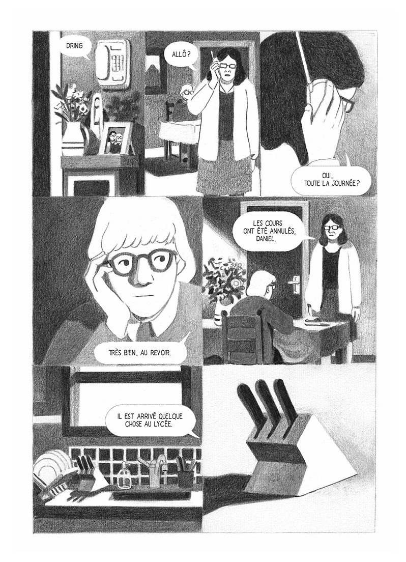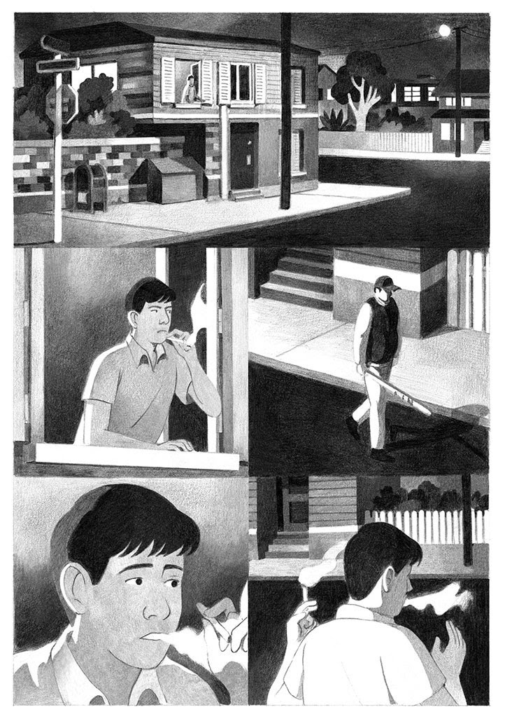 Véritable hommage au cinéma de genre américain, on retrouve dans L’entaille tous les codes du slasher ou du teen movie qui sont ici habilement adaptés en bande dessinée. Les planches, entièrement réalisées au crayon papier, provoquent un sentiment d’irréalité proche du rêve éveillé et nous baignent instantanément dans une ambiance crépusculaire.