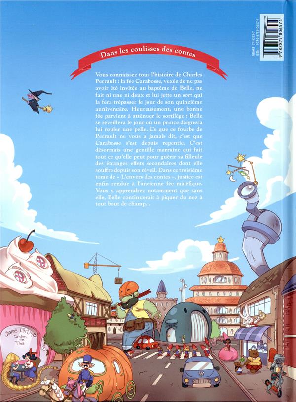 Qui a dit que les méchants de nos contes de fées préférés ne pouvaient pas apprendre de leurs erreurs ? Après les enquêtes policières de la soeur de Cendrillon et la thérapie de la belle-mère de Blanche-Neige, c’est maintenant au tour de la vilaine fée de la Belle au bois dormant de vous révéler ses secrets. » Plusieurs me reconnaîtront comme la méchante fée marraine de la Belle au bois dormant ayant essayé de jeter un sort mortel à la princesse lors de sa naissance, tout cela parce je n’avais pas été invitée à son baptême. Ce que le roi et la plupart des habitants de Livredecontes ignorent, c’est que les autres fées m’ont ensuite transmis toutes les belles qualités qu’elles avaient offertes à Belle, et que je suis une Carabosse transformée. Le jour est donc venu pour moi de montrer que je suis apte à réintégrer la ville ! Pour ce faire, je me lancerai avec mes amis à la poursuite d’une effroyable créature détenant une potion capable de guérir une étrange maladie qui atteint Belle depuis son réveil. Ouvrez vite cet album pour découvrir la suite !