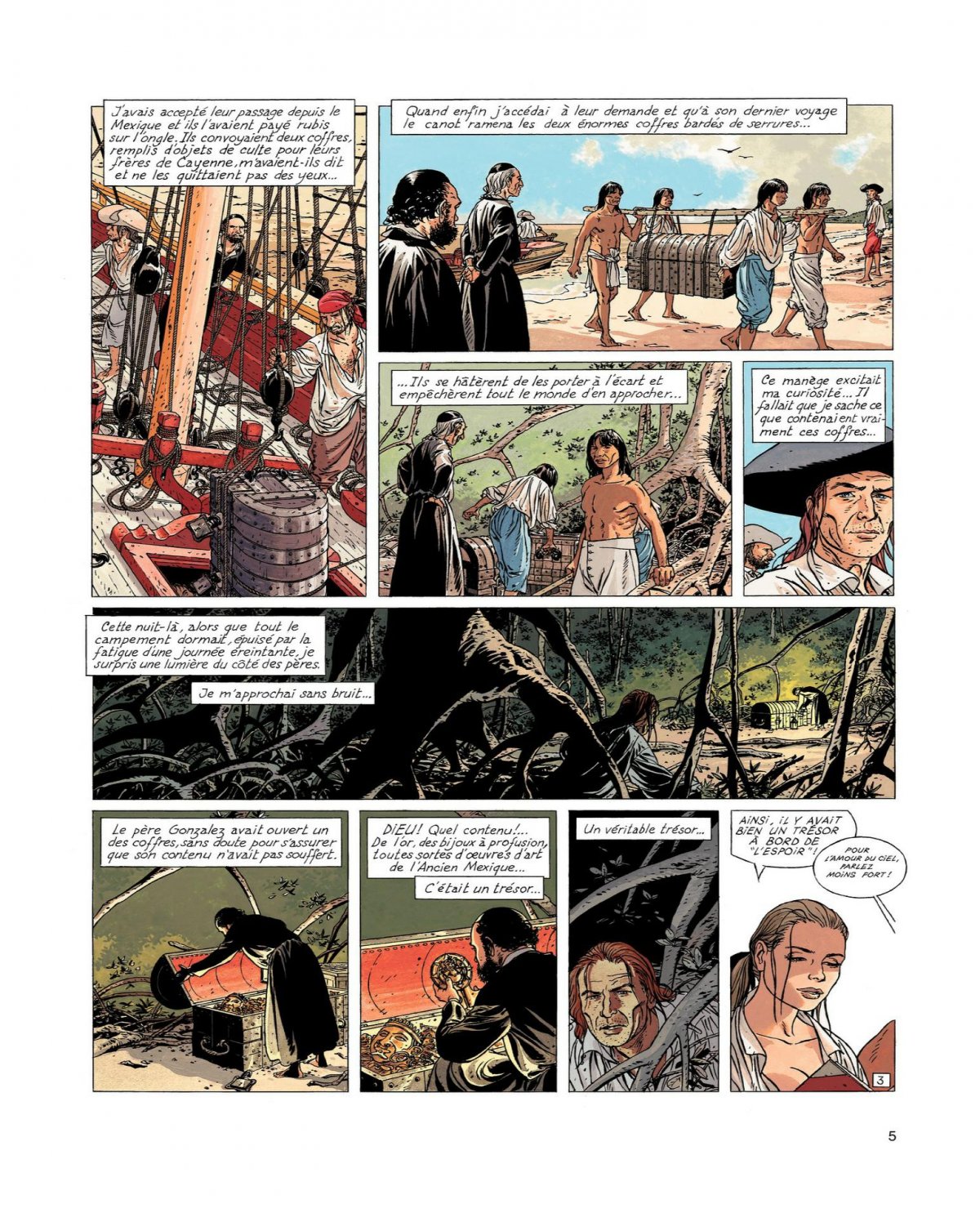 Sur la route de Cayenne, les fers aux pieds et sous bonne escorte, Yann de Kermeur est en bien fâcheuse posture. Accusé du meurtre du comte de Kermellec, L’Épervier entend bien plaider son innocence. Mais pour en collecter les preuves, il lui faut au plus vite tromper la vigilance de ses gardiens et recouvrer sa liberté. Sans oublier d’emmener avec lui Agnès, sa compagne d’infortune, qui semble en savoir long sur l’identité du vrai coupable... et dont les charmes ne le laissent pas indifférent. Agnès, qui cache sur elle un précieux carnet qui révèle enfin l’emplacement d’un fabuleux trésor que beaucoup croyaient perdu à force de l’avoir cherché en vain. À commencer par ses ravisseurs, le marquis de la Motte et le vicomte de Villeneuve, son propre cousin...