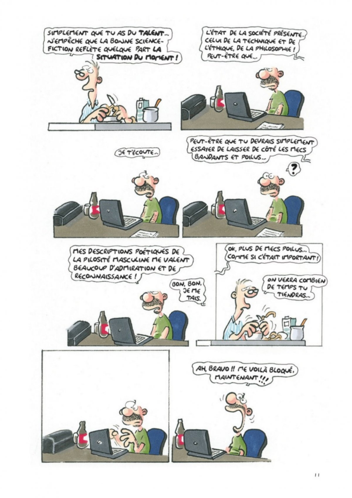 Conrad roule les yeux lorsqu’il entend Paul lui raconter l’histoire de son nouveau livre de science-fiction... Souvenez-vous : à la fin de Une station spatiale nommée désir, le héros de l’espace Barry Rouston fonçait à bord de son bombardier chargé à la testostérone dans les coins les plus reculés du cosmos. Sauf que la folie ne fait que commencer ! Car une étrange singularité plonge maintenant Barry dans un avenir lointain où se trouvent des aliens lubriques et des rats boueux mais pas la moindre trace d’hommes velus ! Ce n’est que lorsqu’il atteint les dessous de la ceinture de la planète Prépuce que Barry constate, soulagé, que l’univers n’a pas fini de grogner.Pas de doute, Barry Rouston plonge la littérature de SF dans des abysses qu’elle n’avait encore jamais explorés !