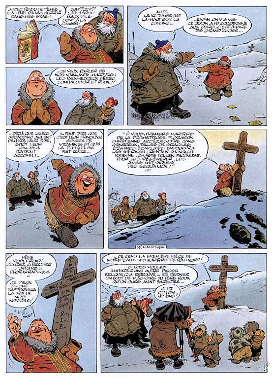C’est donc sur la banquise polaire que l’impétueux révérend et son jeune acolyte se retrouvent. Monsignore Golias a chargé nos deux vaillants soldats du Christ d’y châtier les assassins de leurs prédécesseurs et du même coup, d’y contrer les manuvres perfides de son concurrent protestant, l’évêque Bompas, qui a juré d’éliminer les catholiques de la calotte arctique... La tâche de nos zélés missionnaires sera d’autant plus ardue qu’ils seront aussi confrontés aux chamans païens et aux Esquimaux farouchement hostiles à toute conversion. Sans compter les féroces ours blancs qui ne songent qu’à en faire leur repas