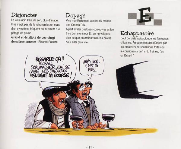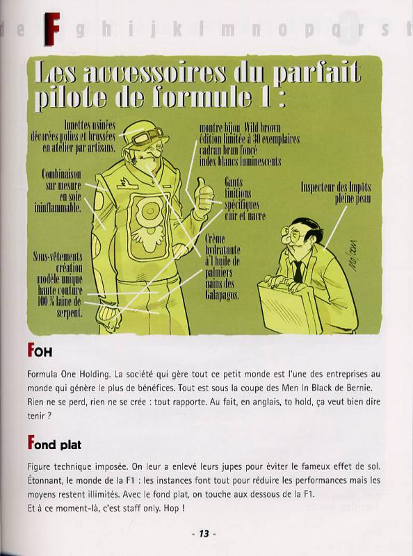 Avec humour et justesse, Mo illustre ce petit dictionnaire destiné aux passionnés de F1 et aux amateurs d’humour rigolo.