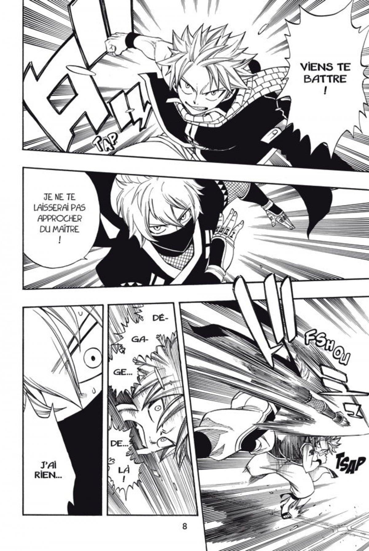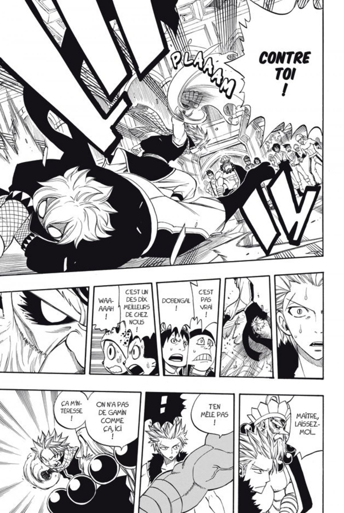 Natsu provoque le maître des Saber Tooth. La tension est à son comble dans l’auberge de la plus forte guilde du royaume. Il faut l’intervention de la propre fille du maître pour ramener notre héros à la raison. Si certains membres des Saber Tooth sont impressionnés, d’autres ne sont pas prêts à oublier l’affront fait à leur guilde... Le tournoi se poursuit malgré tout, les équipes de Fairy Tail remontent petit à petit dans le classement et dans l’estime des spectateurs, mais les sombres desseins des uns et des autres se dévoilent peu à peu...