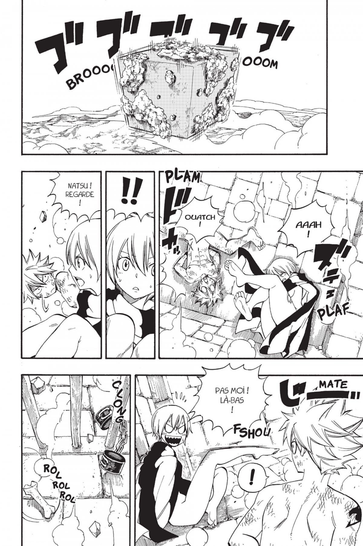 Face est une bombe à impulsion dont l’explosion fera disparaître la magie de tout le continent... Les scellés qui l’enfermaient ont tous été levés ! Seule Fairy Tail peut encore tout arrêter ! Natsu, Erza, Mirajane et Lisana parviennent à se libérer et contre-attaquent, alors que le reste de la guilde passe à l’assaut de la base de Tartaros ! C’est à ce moment-là que Zeleph, le plus puissant des mages noirs, apparaît devant Natsu ! Tartaros n’est autre que sa bibliothèque... L’endroit où vivent les démons de ses livres. Quelle sera l’issue du combat à mort opposant Fairy Tail à Tartaros ?