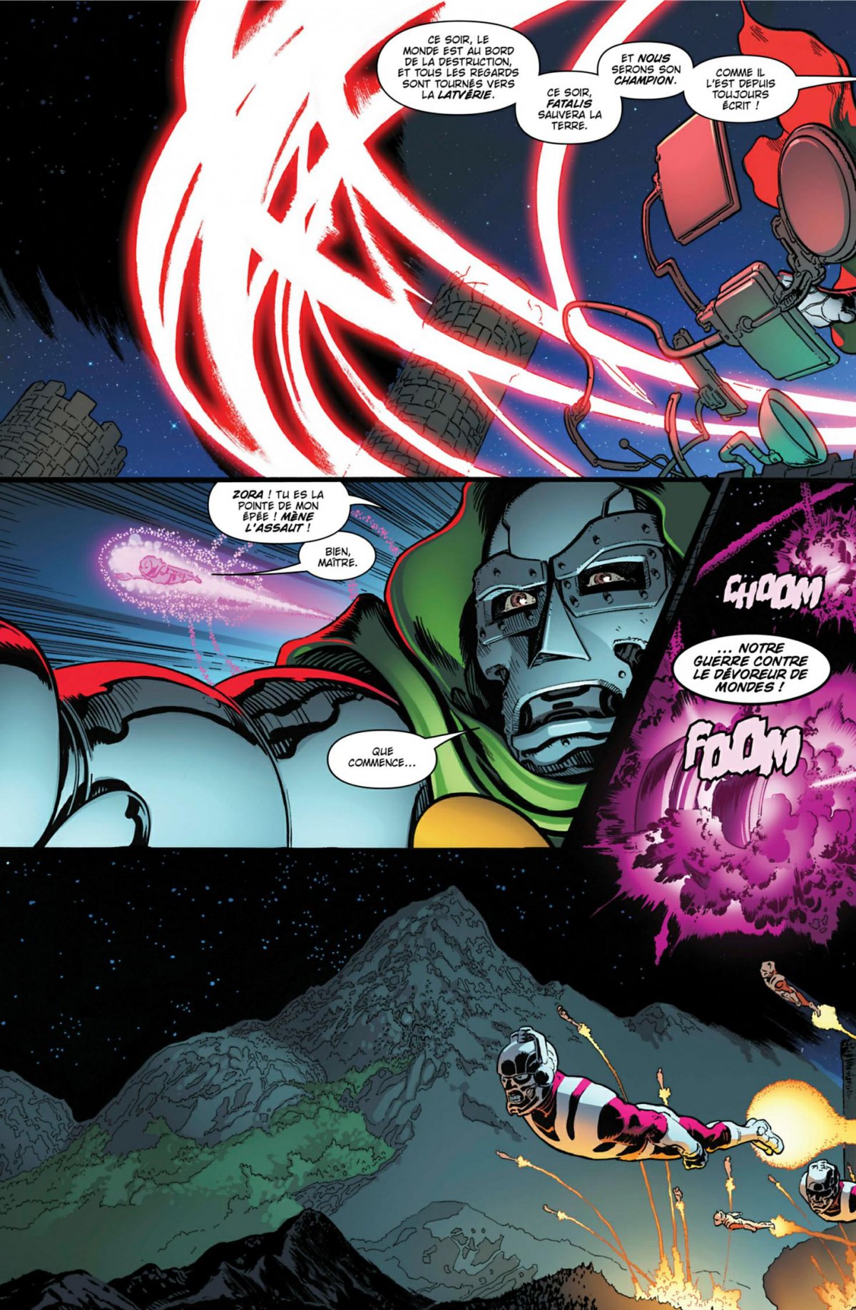 Galactus attaque la Latvérie et Fatalis est prêt à tout pour montrer sa supériorité sur les Quatre Fantastiques ! Lorsque les héros se précipitent pour aider le Docteur Doom, ils ne se doutent pas qu’ils tombent dans un piège savamment orchestré