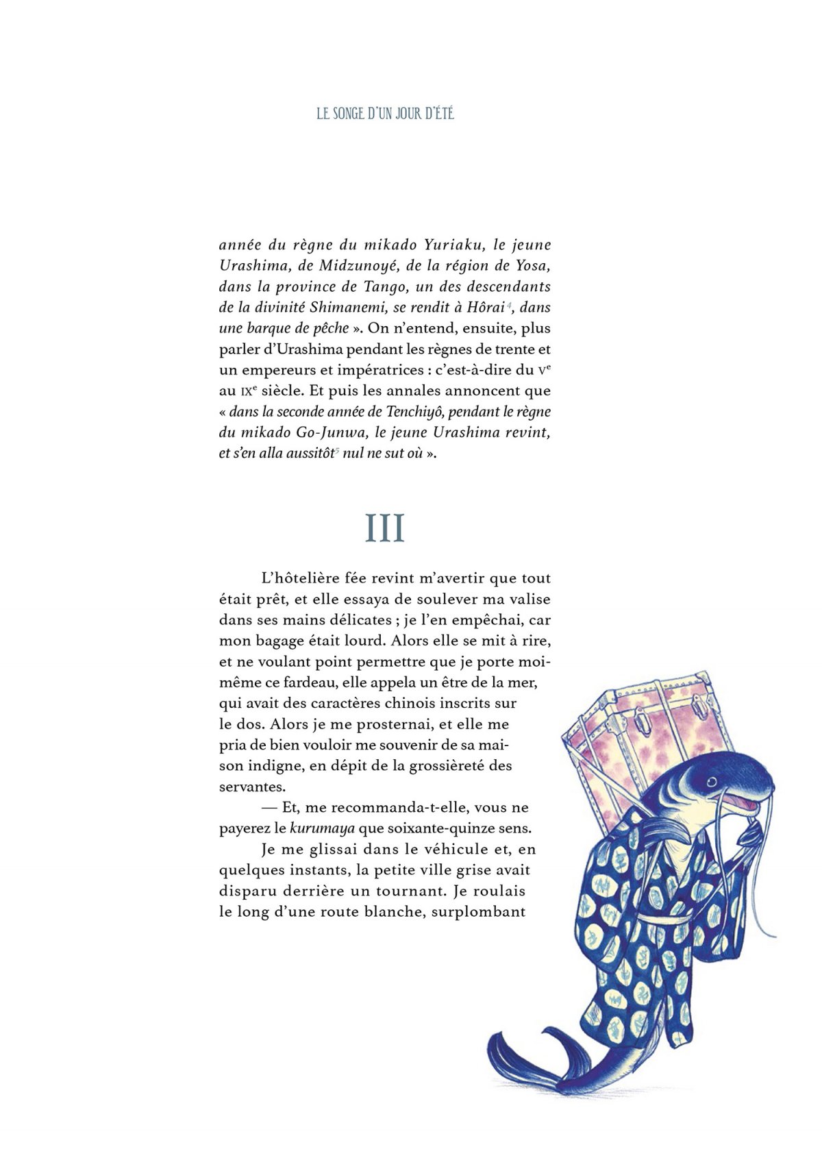 Au sommet de son talent graphique, Benjamin Lacombe propose un hommage au Japon, à travers une interprétation envoûtante et référencée de l’oeuvre de Lafcadio Hearn
