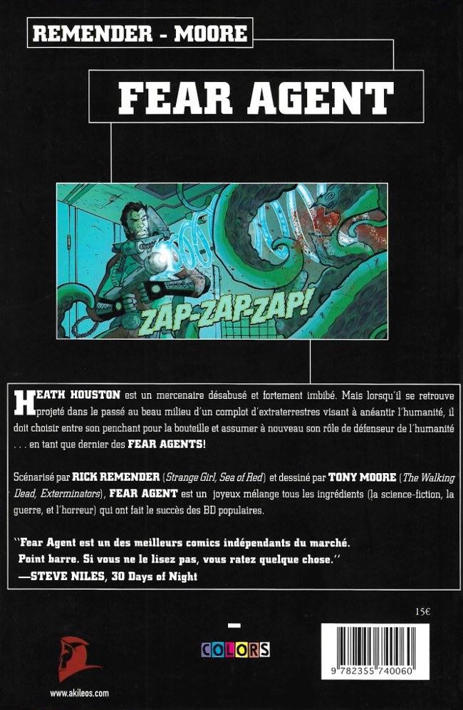 Heath Houston est un mercenaire désabusé et fortement imbibé. Mais lorsqu’il se retrouve projeté dans le passé au beau milieu d’un complot d’extraterrestres visant à anéantir l’humanité, il doit choisir entre son penchant pour la bouteille et assumer à nouveau son râle de défenseur de l’humanité... en tant que dernier des Fear Agents !