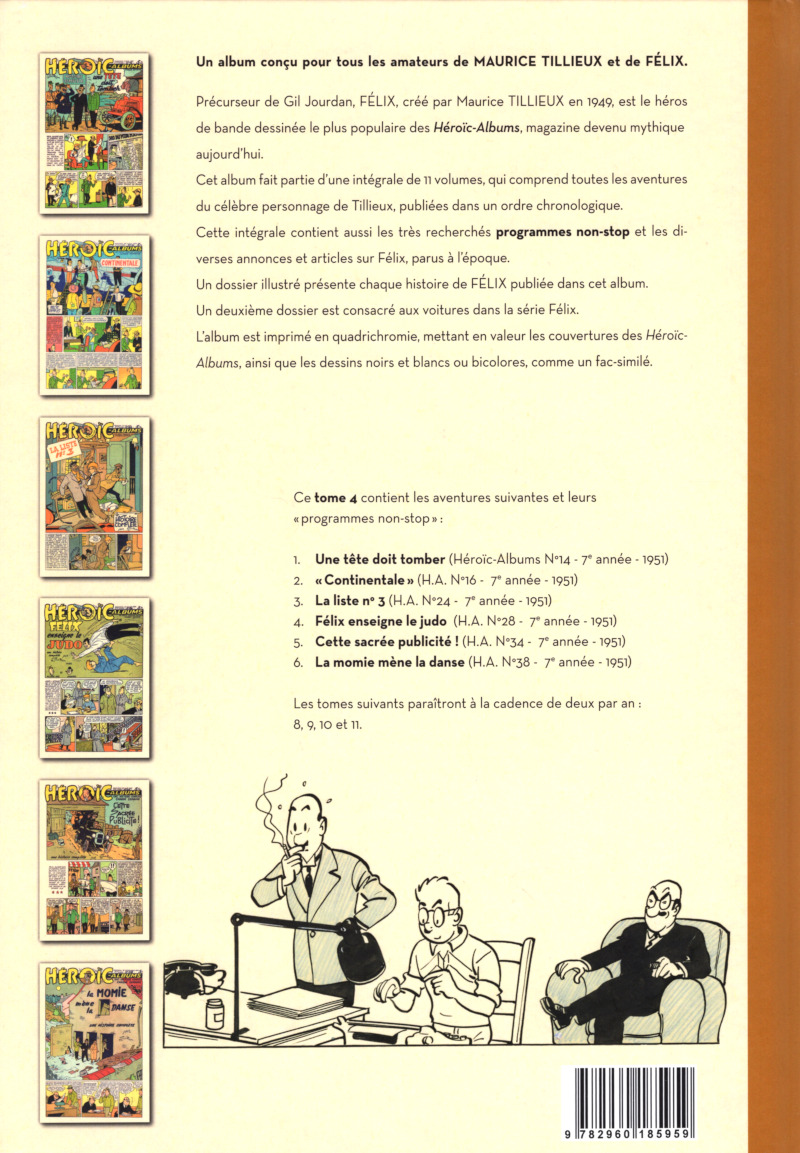 Félix - Intégrale 4 est le volume 4 de la série Félix - Intégrale par Maurice Tillieux, paru en 2018. Selon nos informations, il n'en existe qu'une seule édition, publiée par Editions de l’élan.