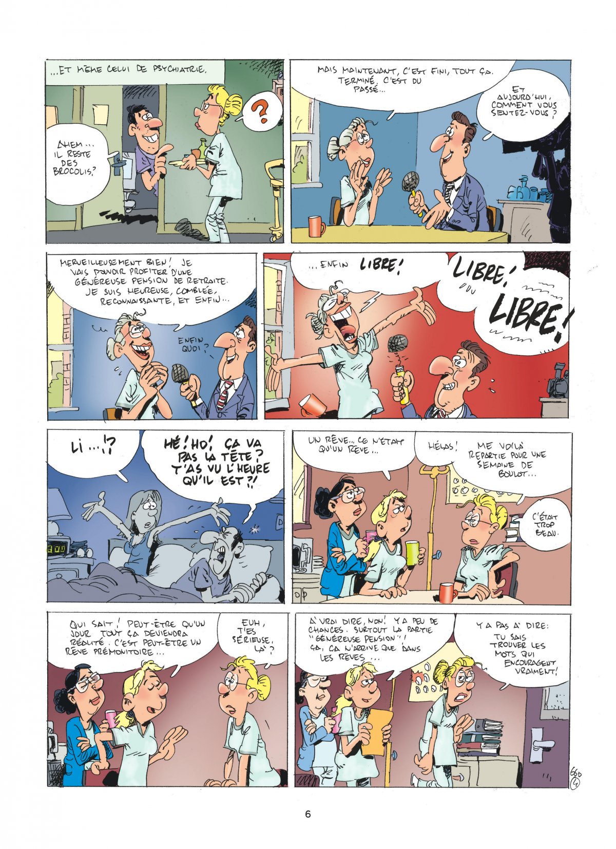Rien ne va plus à l’hôpital et c’est à croire que Raoul Cauvin et Philippe Bercovici se sont donnés le mot pour achever patients et professionnels en tranches de rire toujours aussi drôles et caustiques. Les gags de ce 42e tome s’enchaînent encore comme pour conjurer le mal dans la bonne humeur malgré les restructurations des services et les reconversions du personnel. Quand certains ont déjà rejoint les services de psychiatrie, d’autres rêvent de prendre leur retraite...