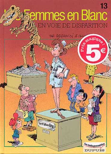 En voie de disparition est le volume 13 de la série Femmes en Blanc (Les) par Raoul Cauvin et Philippe Bercovici, paru en 1995. Selon nos informations, il en existe 4 éditions, dont la principale est éditée par Dupuis en 1995.