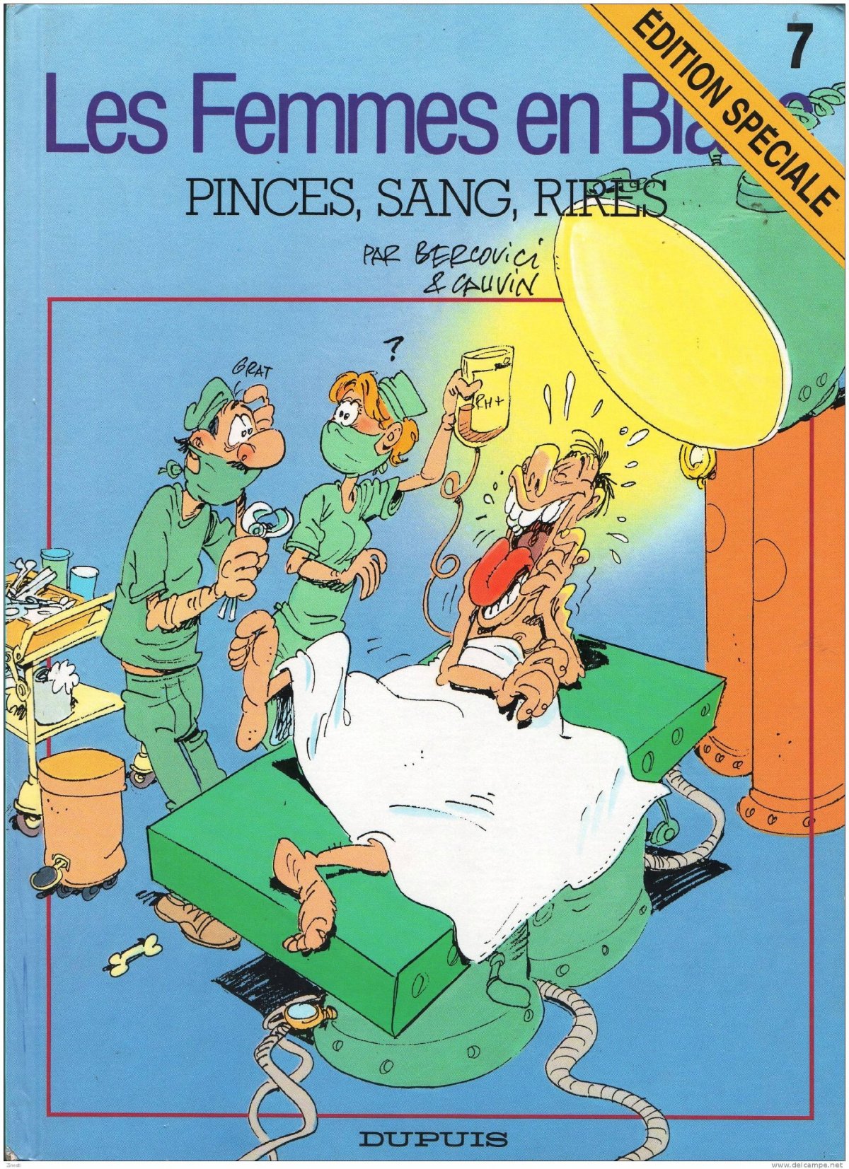 Pinces, sang, rire est le volume 7 de la série Femmes en Blanc (Les) par Raoul Cauvin et Philippe Bercovici, paru en 1990. Selon nos informations, il en existe 7 éditions, dont la principale est éditée par Dupuis en 1990.