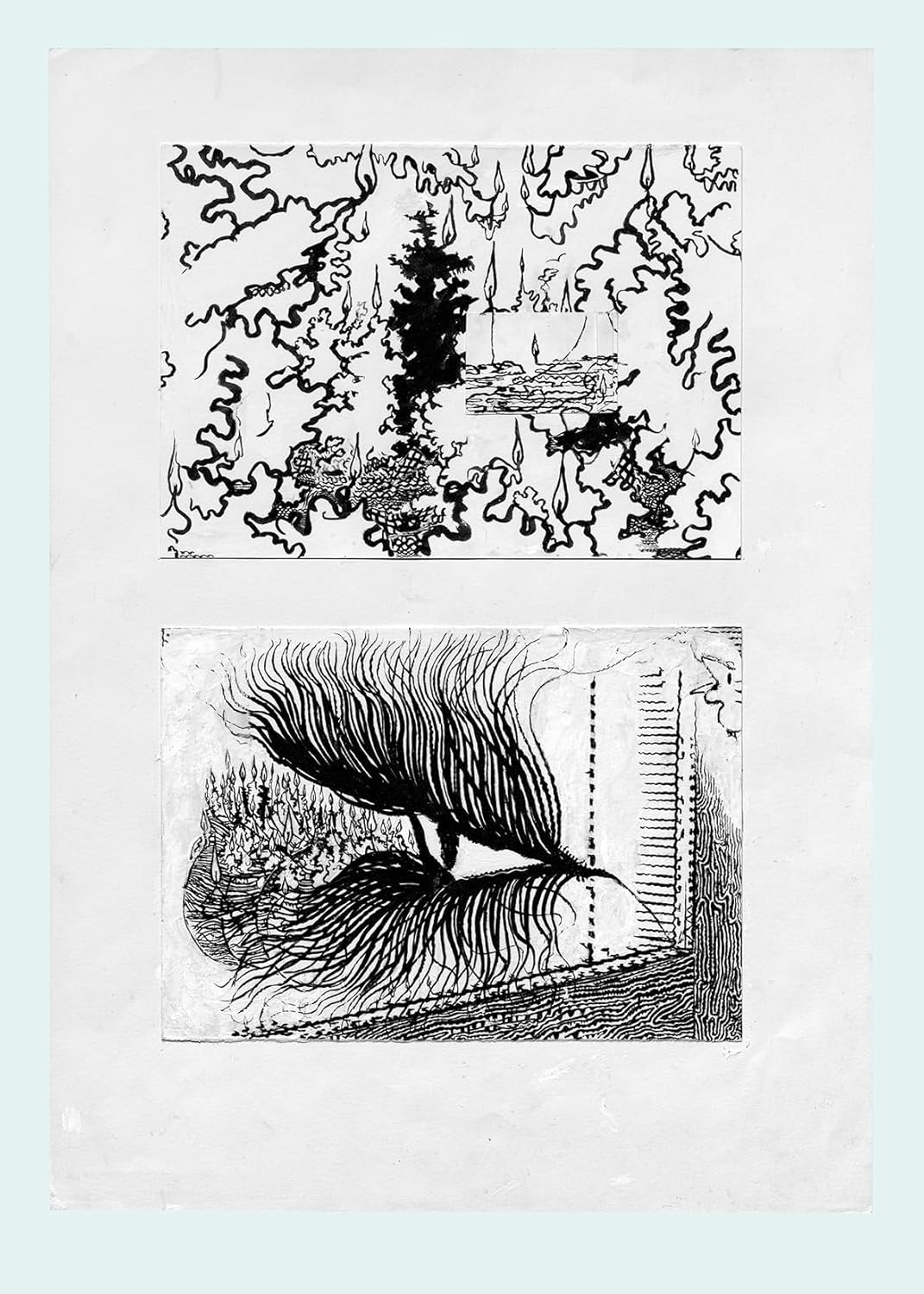 Le flux d’images dessinées à l’encre noire, retouchées à l’excès, collées, montées en planches reproduite avec toute leur matérialité nous entraîne dans un voyage mental qui bouscule notre indifférence aux choses du quotidien. Et l’on découvrira enfin la texture de l’ennui.