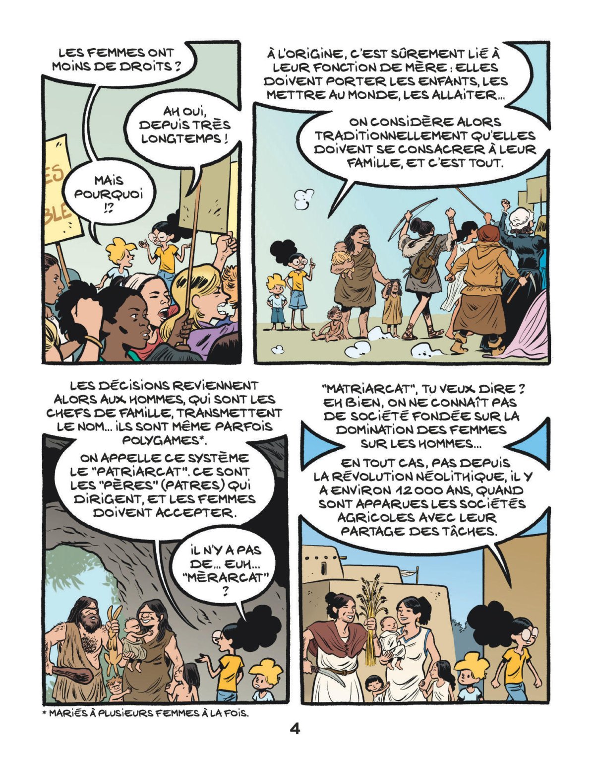 Nino boude, car il estime que sa maman bafoue ses droits en lui refusant de jouer à la tablette. Ariane lui fait remarquer que les droits, ça s’obtient par de la revendication explicative plutôt que par la bouderie ! C’est d’ailleurs ce que font les femmes depuis si longtemps afin de tendre à l’égalité avec les hommes... L’occasion pour Nino de découvrir les profondes inégalités dont ont souffert les femmes au fil des siècles. Et l’occasion pour Ariane de lui raconter l’histoire du féminisme, un combat plus que jamais nécessaire et d’actualité !