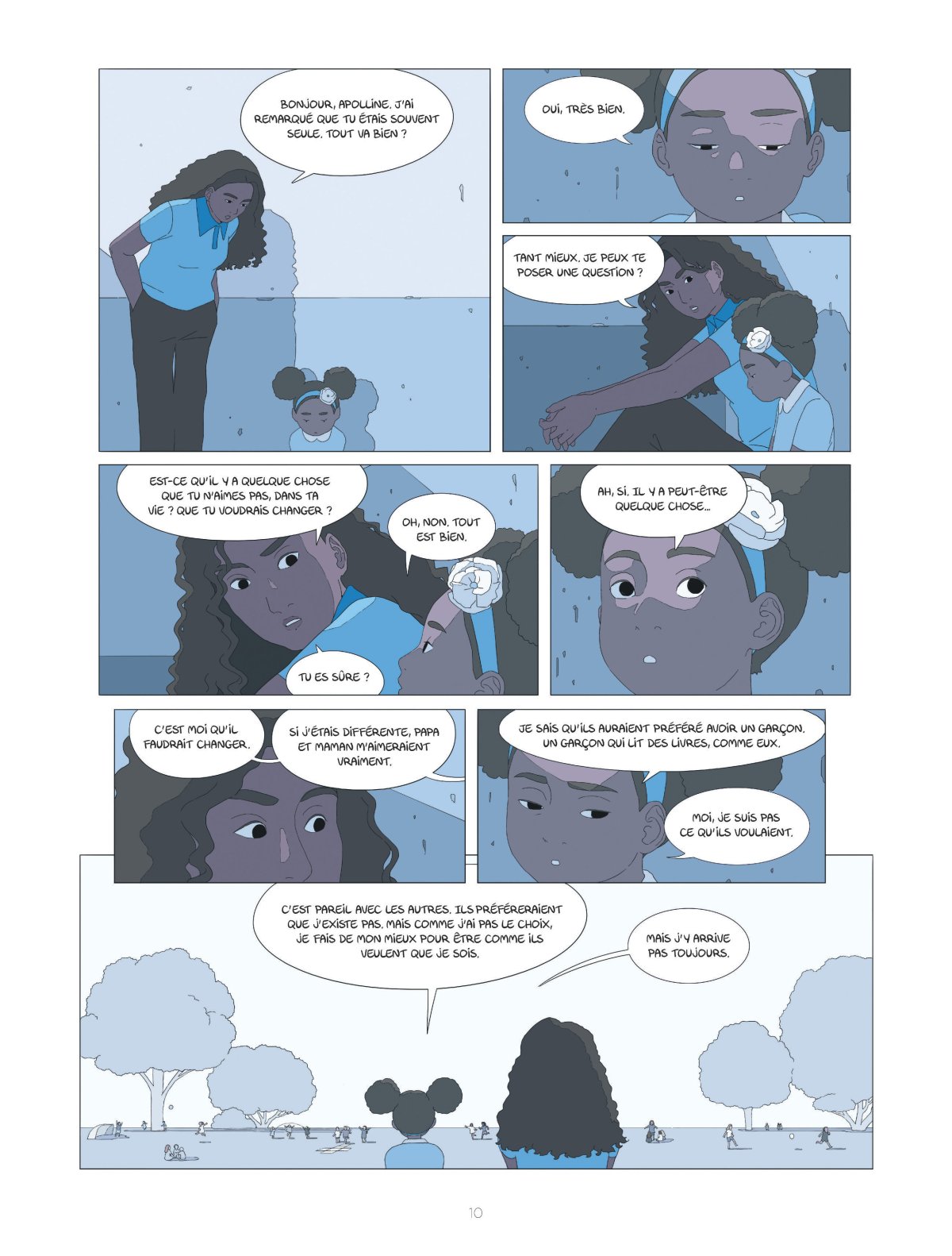 Apolline, c’est la bonne copine. Ou plutôt, la bonne poire. L’adolescente se met constamment au service des autres, pour se faire oublier, pour ne pas déranger. Apolline, la béquille qui soutient sans rien demander en retour, et qui ne connait que rejet et solitude depuis toute petite. Si elle fait partie du « club des mal-barrées », ce n’est pas pour autant que ses amies font réellement attention à elle. Et ne parlons pas de ses parents, qui auraient préféré un garçon appréciant la lecture et la musique classique, comme eux, au lieu de cette fille masculine qui joue au rugby..