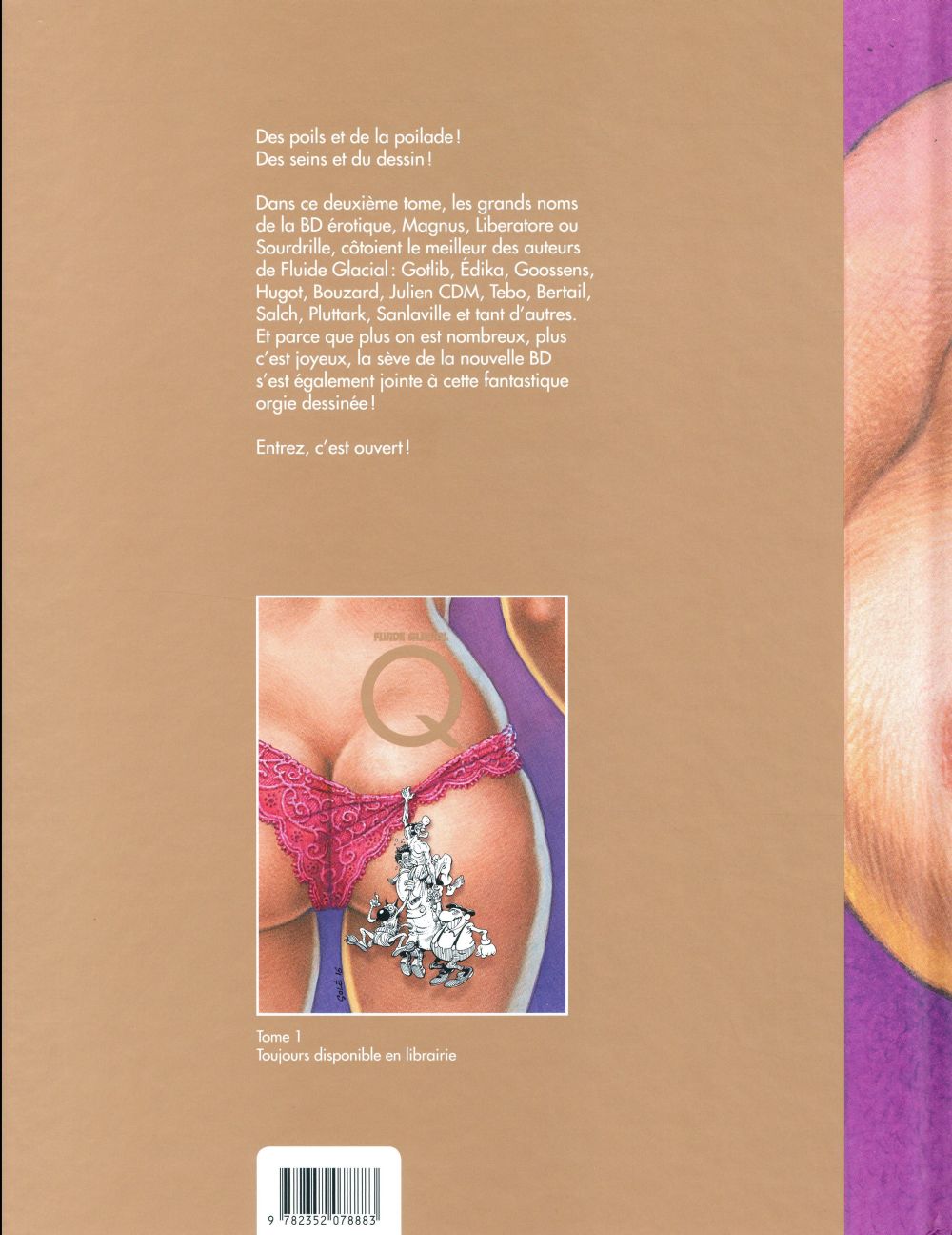 Des poils et de la poilade ! Des seins et du dessin ! Dans ce deuxième tome, les grands noms de la BD érotique, Magnus, Liberatore ou Sourdrille, côtoient le meilleur des auteurs de Fluide Glacial : Gotlib, Édika, Goossens, Hugot, Bouzard, Julien CDM, Tebo, Bertail, Salch, Pluttark, Sanlaville et tant d’autres. Et parce que plus on est nombreux, plus c’est joyeux, la sève de la nouvelle BD s’est également jointe à cette fantastique orgie dessinée ! Entrez, c’est ouvert !