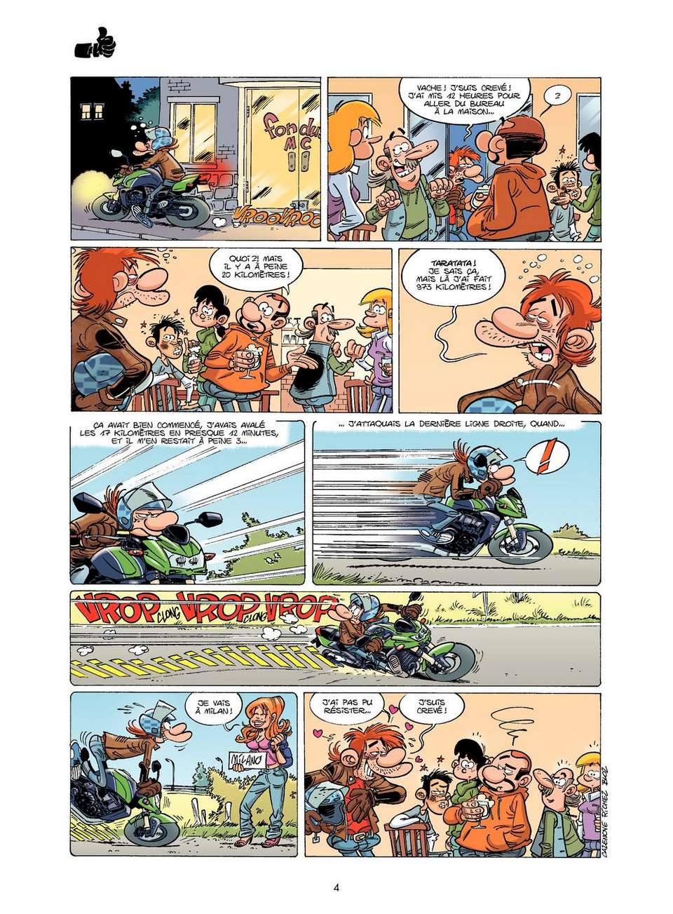 Fondus de moto (Les) 4 est le volume 4 de la série Fondus de moto (Les) par Hervé Richez, Christophe Cazenove et Bloz, paru en 2012. Selon nos informations, il en existe 4 éditions, dont la principale est éditée par Bamboo en 2012.