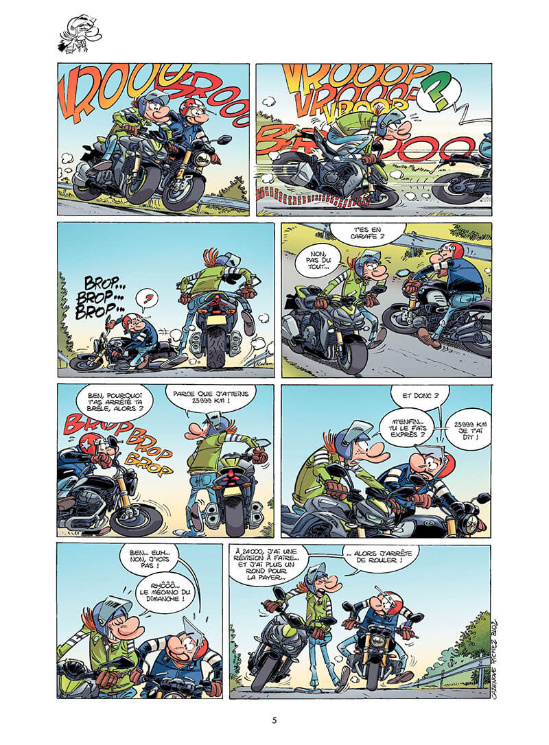 Ça carbure sévère du côté du local de l’Association des fondus ! Les plus belles bécanes, vintage et chromées comme il se doit, sont réunies pour une nouvelle équipée sauvage des fondus de moto. Alors accrochez-vous bien et ne manquez pas des aventures plus motardes que jamais !