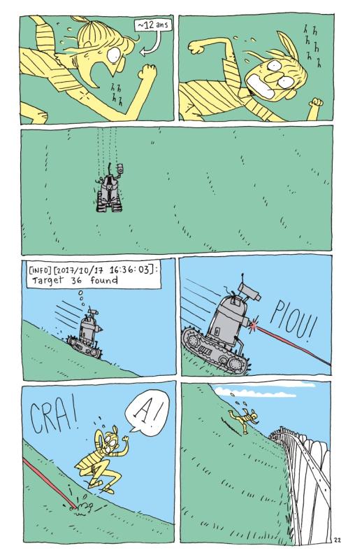 Est-ce un récit de science-fiction ? Une histoire d’amour ? Une bande dessinée expérimentale qui déconstruit les codes de la communication ? En fait, c’est un peu tout ça. Football-Fantaisie est le livre le plus inusité et le plus ambitieux de Zviane - ce qui n’est pas peu dire ! C’est l’histoire de deux petites filles, Frédérique et Annabelle (12 et 6 ans), qui s’enfuient du laboratoire d’un scientifique fou. Prêt à tout pour les rattraper, il lance à leurs trousses un robot tueur ! Piou piou piou