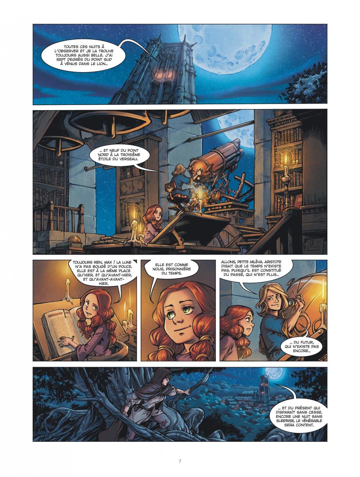 Au coeur d’un village hors du temps, Max, Miléva et les autres jeunes élèves du Vénérable ont mis l’éternité à profit pour développer leur intellect, sans limites. Mais cette stase érudite prend fin le jour où une mystérieuse adulte dérobe une partie du cristal qui les protégeait de l’écoulement du temps. Si rien n’est fait, ce dernier reprendra ses droits, et se fera payer les intérêts. Pour empêcher cela, une petite équipe s’aventure hors du village, à la recherche de la voleuse. Leur érudition suffira-t-elle à les protéger de cette fuite du temps qu’on appelle la Vie ?