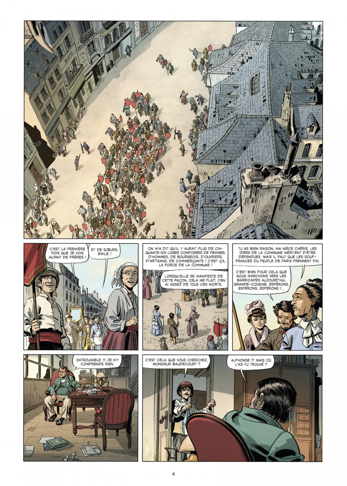 Avril 1871. Par-delà les barricades, les citoyens défilent dans les rues de Paris pour exprimer les idées de La Commune. Resté seul à la rédaction de son journal Fraternités, JG Baudecourt est assassiné. Son meurtrier laisse un tract versaillais pour signer le forfait. Émile, son fils, doit reprendre les rennes du journal dans un climat délétère. Adolphe Thiers se prépare à réprimer l’insurrection dans le sang...