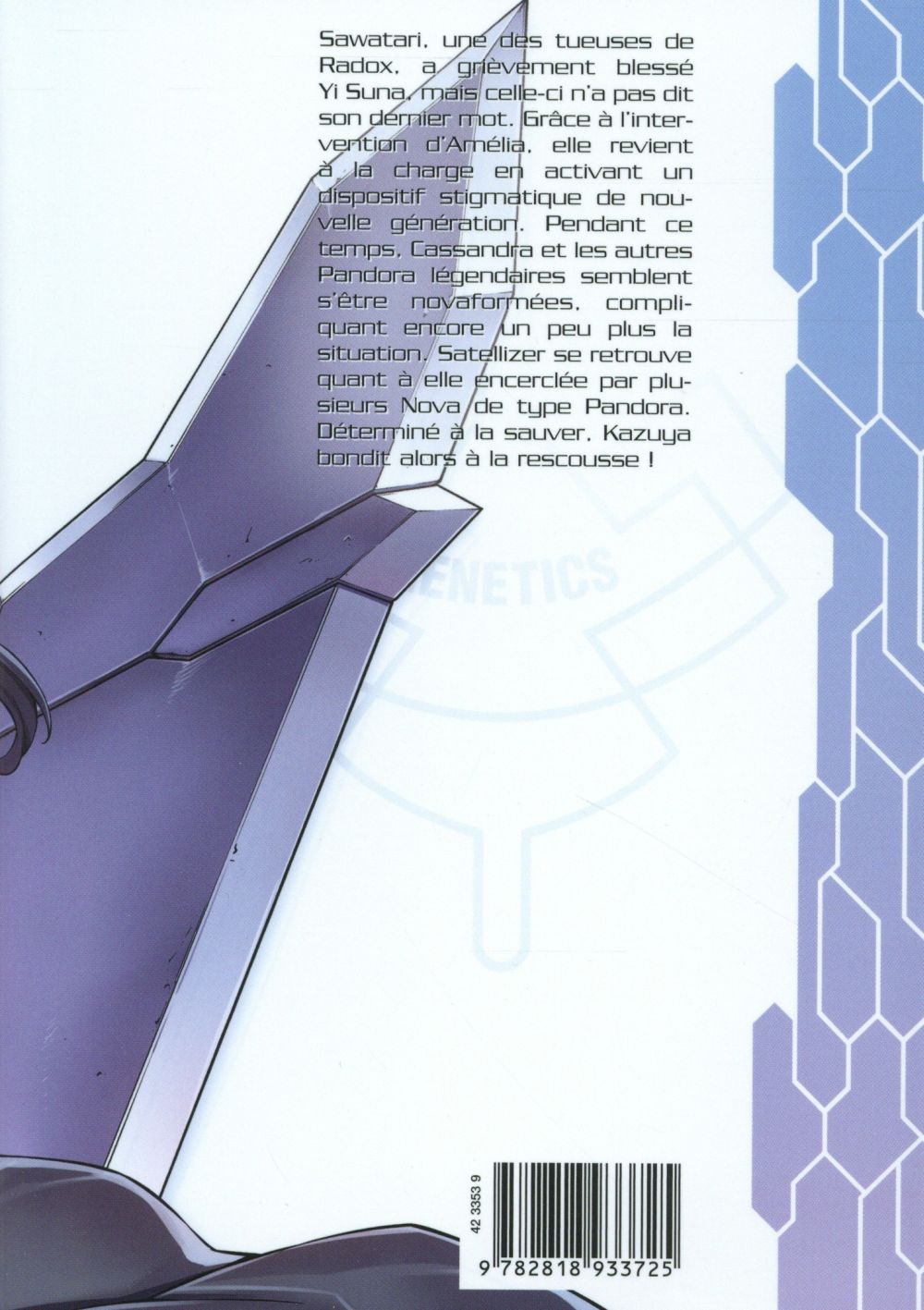 Sawatari, une des tueuses de Radox, a grièvement blessé Yi Suna, mais celle-ci n’a pas dit son dernier mot. Grâce à l’intervention d’Amélia, elle revient à la charge en activant un dispositif stigmatique de nouvelle génération. Pendant ce temps, Cassandra et les autres Pandora légendaires semblent s’être novaformées, compliquant encore un peu plus la situation. Satellizer se retrouve quant à elle encerclée par plusieurs Nova de type Pandora. Déterminé à la sauver, Kazuya bondit alors à la rescousse !