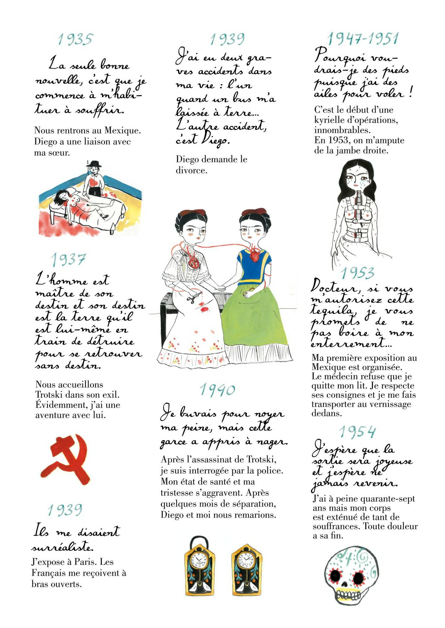 Inspirée par l’intensité de Frida Kahlo et de ses tableaux les plus célèbres, l’artiste espagnole María Hesse nous livre ici une oeuvre singulière sous formes d’articles, de lettres, de dessins très colorés qui illustrent magnifiquement les fragments de la vie de l’icône mexicaine.