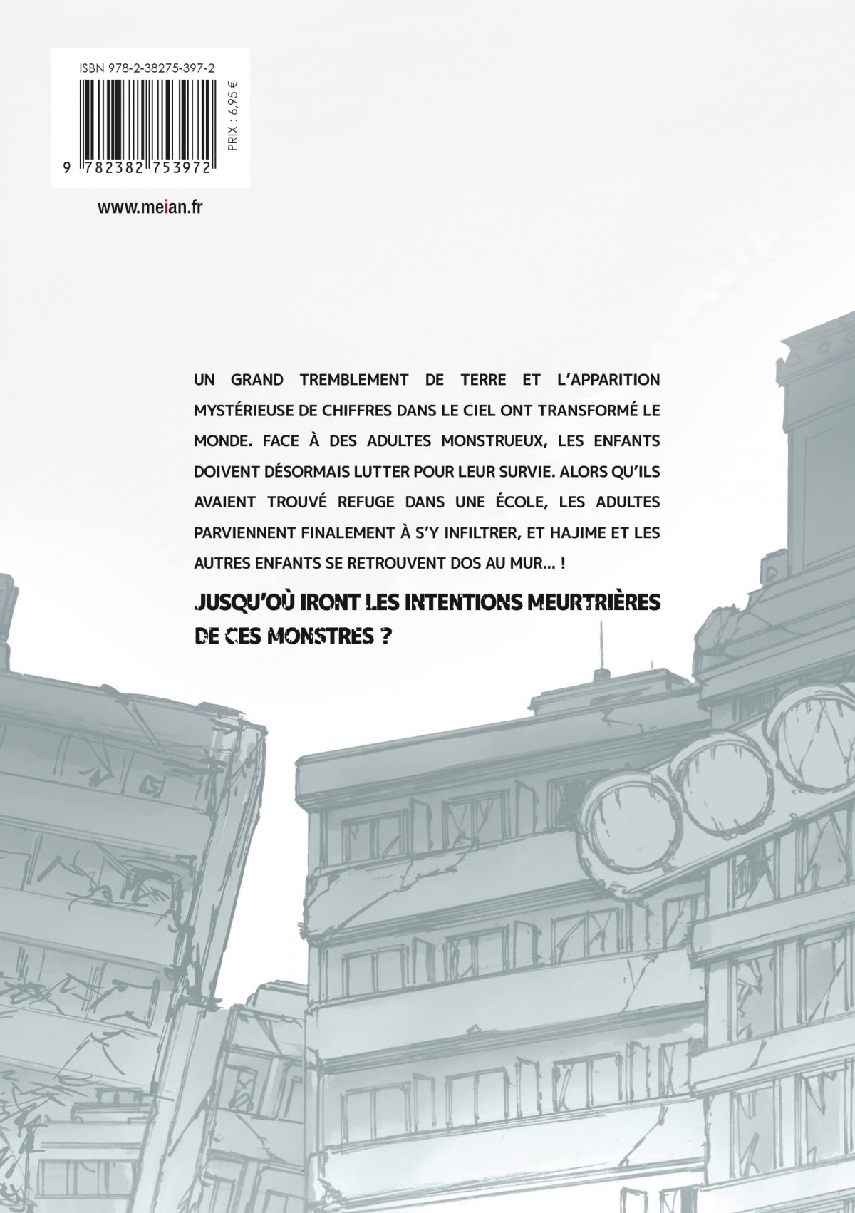 Un grand tremblement de terre et l’apparition mystérieuse de chiffres dans le ciel ont transformé le monde. Face à des adultes monstrueux, les enfants doivent désormais lutter pour leur survie. Alors qu’ils avaient trouvé refuge dans une école, les adultes parviennent finalement à s’y infiltrer, et Hajime et les autres enfants se retrouvent dos au mur..