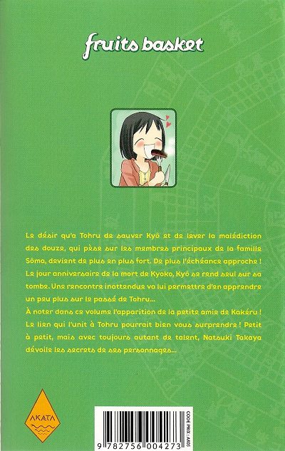 Le désir qu’a Tohru de sauver Kyô et de lever la malédiction des douze, qui pèse sur les membres principaux de la famille Sôma, devient de plus en plus fort. De plus l’échéance approche ! Le jour anniversaire de la mort de Kyoko, Kyô se rend seul sur sa tombe. Une rencontre inattendue va lui permettre d’en apprendre un peu plus sur le passé de Tohru...