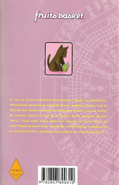 Une nouvelle année scolaire commence. Tohru, Yuki et Kyô vont tous les trois passer dans la classe supérieure. Finalement, Momiji et Hatsuharu intègrent le même lycée, ce qui provoque alors une drôle d’atmosphère dès la rentrée. Le premier jour de classe, Akito, le chef du « clan » Soma, apparait brusquement devant Tohru... Pourquoi Akito a-t-il décidé de se déplacer en personne pour la voir ? Personne ne connait ses intentions... Ayamé, le grand frère de Yuki, fait lui aussi son apparition dans le quatrième volume de cette brillante et joyeuse « comédie de la transformation ».