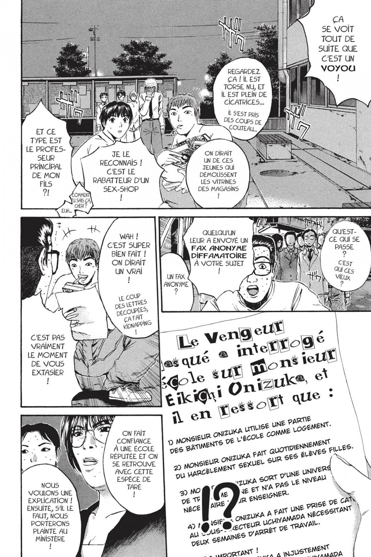 Voici la rencontre d’Onizuka avec la fille de son sous-directeur et de la petite soeur d’Azusa, avec qui il jouera les détectives pour retrouver sa collègue disparue ! Pendant ce temps, Fujiyoshi tente de convaincre Miyabi de lui confier le terrible secret qui la rend malheureuse...