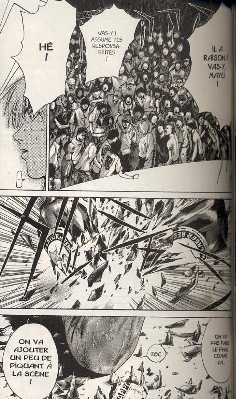 Dans lequel on verra que les papillons ne naissent pas tous dans des cocons et que leur envol prend parfois des formes troublantes... Il n’en faudra pas plus pour que Eikichi Onizuka se lance dans une nouvelle aventure où, tel un lutteur de foire, il devra affronter cent adversaires au cours d’un tournoi de bras de fer dantesque... Sa victoire, ironie du sort, va sauver d’un supplice certain son sous-directeur, et quelques-uns de ses collègues, alors que l’angélique et démoniaque Mayu s’apprête à nous révéler son terrible secret...