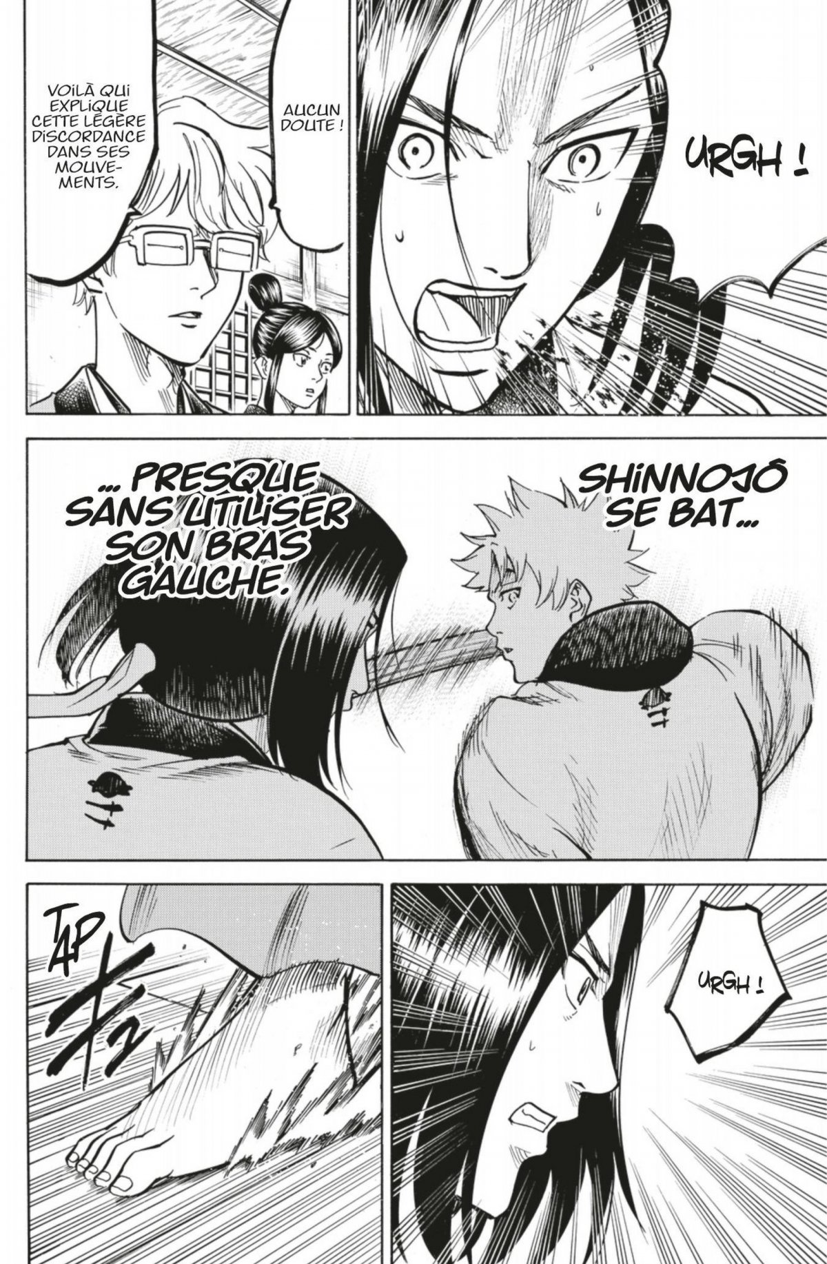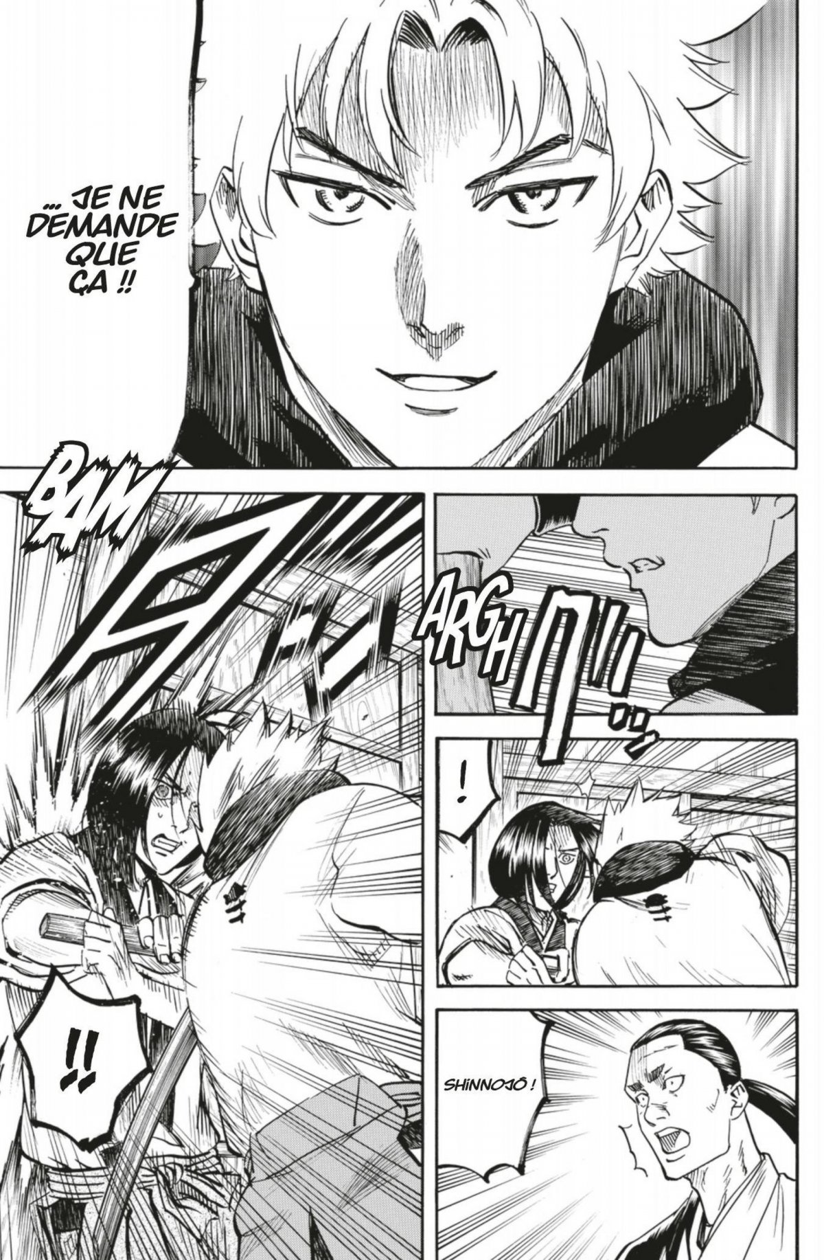 Gama contre Shinnojô !! Leur duel est devenu un combat où chacun met sa vie en jeu ! Gama va asséner un coup terrible que même Shinnojô n’a jamais vu ! De son côté, Zenmaru engage aussi un combat à mort face à un adversaire redoutable ! C’est un vieil homme classé 99e sur la liste des Cent Lames, mais sa main cache un sinistre secret...