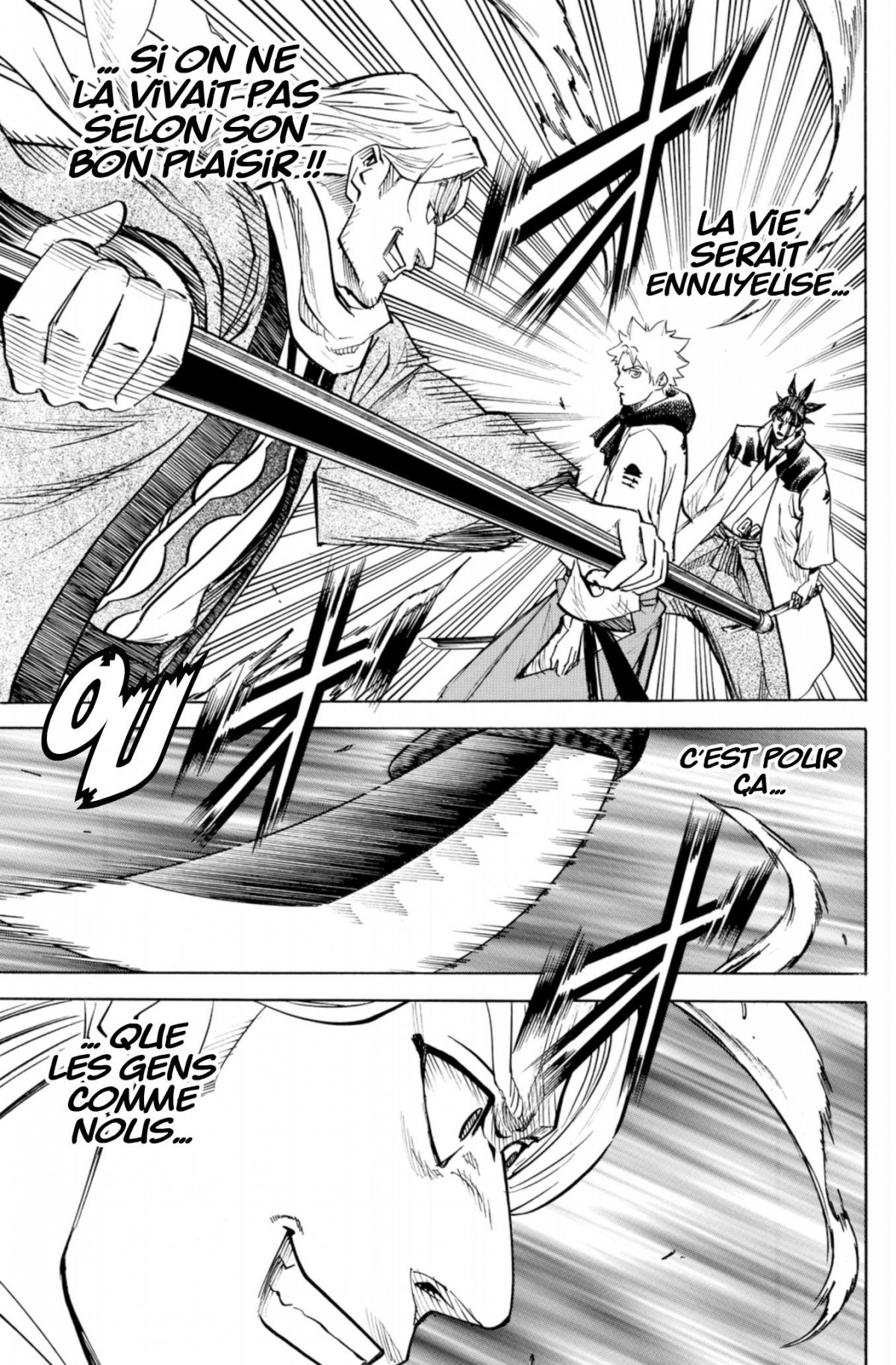 Bien qu’ayant repoussé les assauts des écoles Kasanemanji et Tamagakushi, l’école Ôgame n’est toujours pas qualifiée pour la troisième manche. Son prochain adversaire est l’école des lances Myôjin, composée des « quatre lances divines ». Cette école représente seigneur Naokatsu, le petit frère de Naoyoshi, seul membre de la fratrie à apprécier son frère paria ! Le combat s’annonce sans merci, chaque adversaire tenant à affronter Jinsuke en personne, Gama en tête !