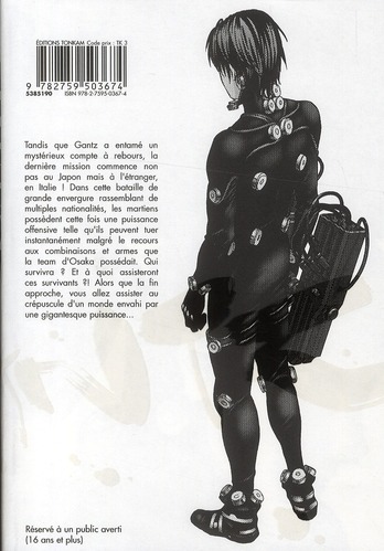 Catapultée en Italie pour une nouvelle mission, la Gantz Team de Tokyo débarque en plein massacre. Les adversaires sont surpuissants malgré l’alliance d’équipes venues des quatre coins de la planète. En prélude à la Katastrophe, les effectifs de Gantz sont épurés au maximum, nos héros survivront-ils ? Et pour quel futur ?