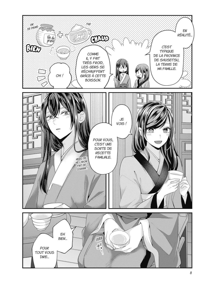 La cour impériale est en liesse après l’annonce de la grossesse de dame Kihi, la favorite. Loin de cette effervescence, Yuran reçoit une lettre de dame Kenhi, la quatrième épouse : elle y exprime son souhait de divorcer de l’empereur... Yuran doit-elle l’aider à exaucer son voeu ou la convaincre d’y renoncer ? Sa décision risque de déclencher la colère de Sa Majesté Impériale... Dans ce cinquième volume, les sentiments de notre couple favori, de l’empereur et de son épouse s’entrecroisent !