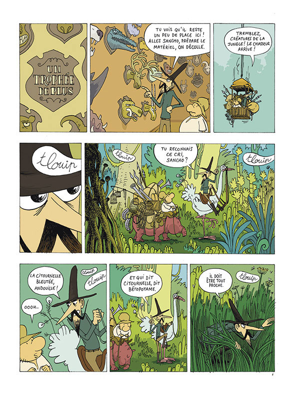 Aux confins des rêves vivent toutes sortes d’animaux aussi fabuleux qu’imaginaires : le bétopotame, la chaizelle ou le poëléphant... Pour le Chasseur et son fidèle Sancho, il suffit de s’endormir et crac, la traque commence... comme autant de portes ouvertes sur l’absurde. Chasseur de rêves, c’est un tandem de doux rêveurs, qui ne manqueront pas de surprendre, et de ravir les jeunes lecteurs !