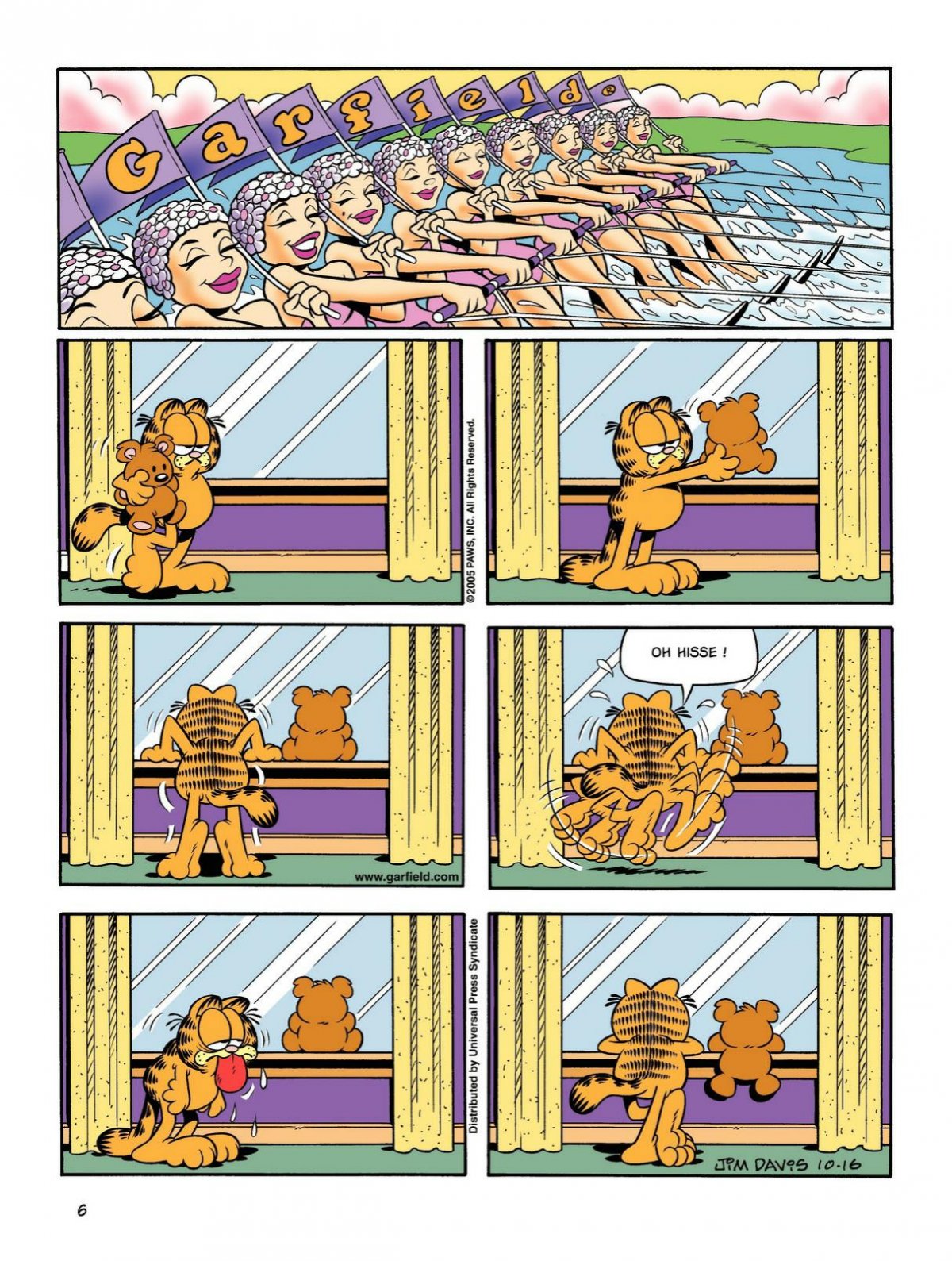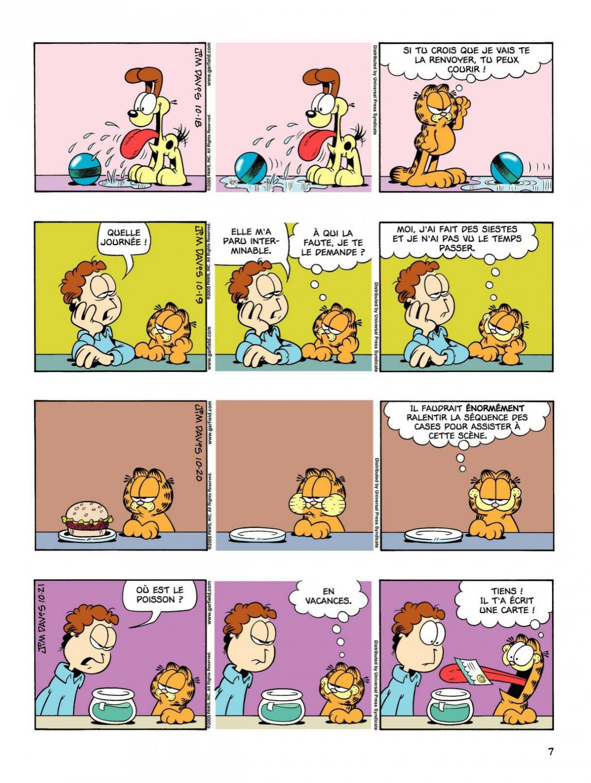 Chaque repas est une fête pour Garfield ! Et un cauchemar pour Jon, son soi-disant « maître »... Garfield est aussi un danger pour tous les livreurs de pizzas de la terre, tous les réveils-matin du monde, toutes les araignées de la Création, et tous les chiens de garde du quartier ! Attention, rien n’arrête un chat glouton sur le chemin de sa gamelle...