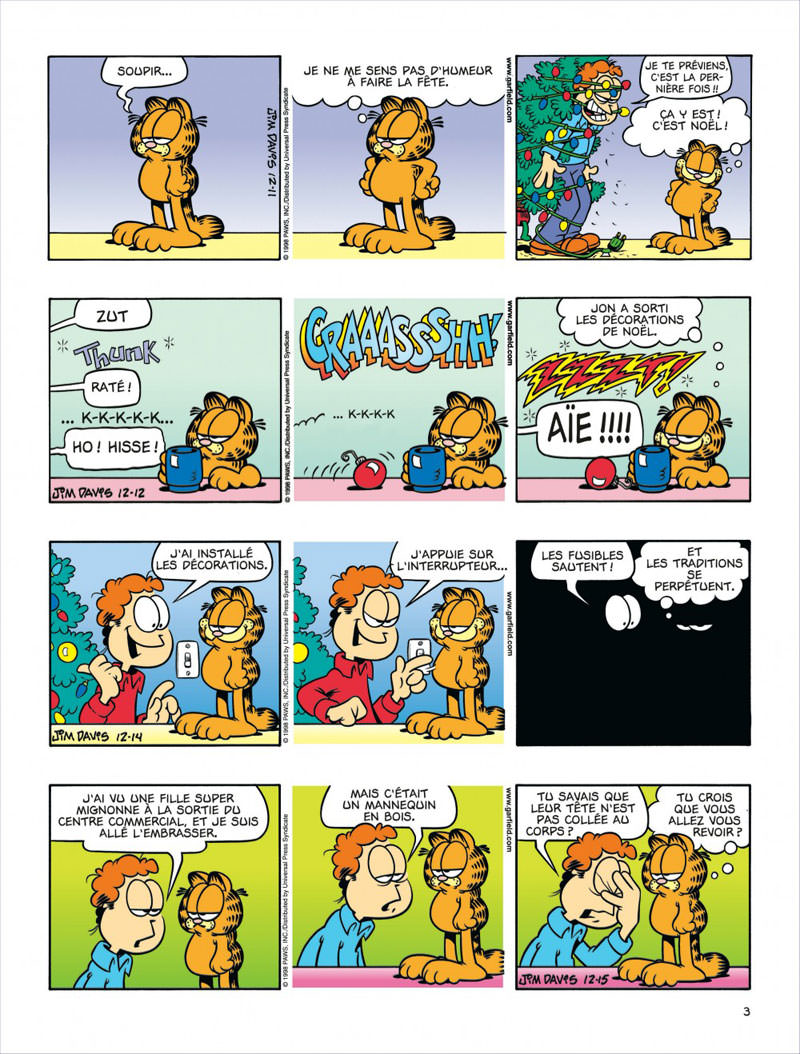 Et puis, les anniversaires, c’est comme les lundis, ça revient tout le temps. Voilà que Garfield a déjà 21 ans. Odie s’est scotché des 21 partout, histoire de remuer le couteau dans la plaie, sans doute. Mais la souris Herman le console : son oncle a vécu aussi vieux, et il était complètement gâteux. Tout va bien.